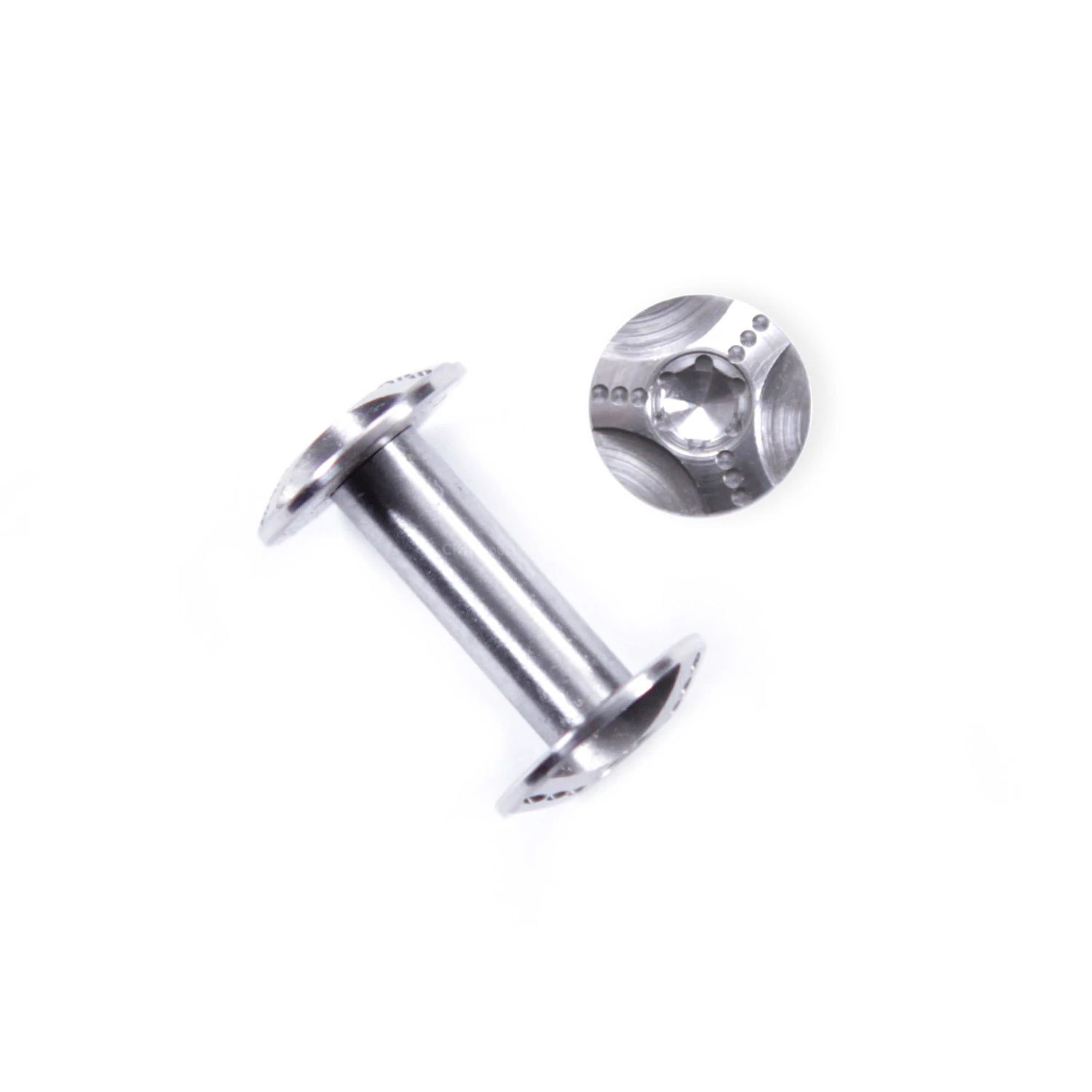 Designed by USA knife maker, Steve Kelly, the PVA125-7 designer pivot assembly is a combination heat-treated 416 SS .375 length barrel with dual designer 6al4v Titanium screws. All parts are USA made and offer the highest precision in the industry. The .307 inch diameter screw head fits nicely into a .312 inch counterbore.