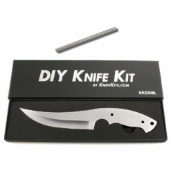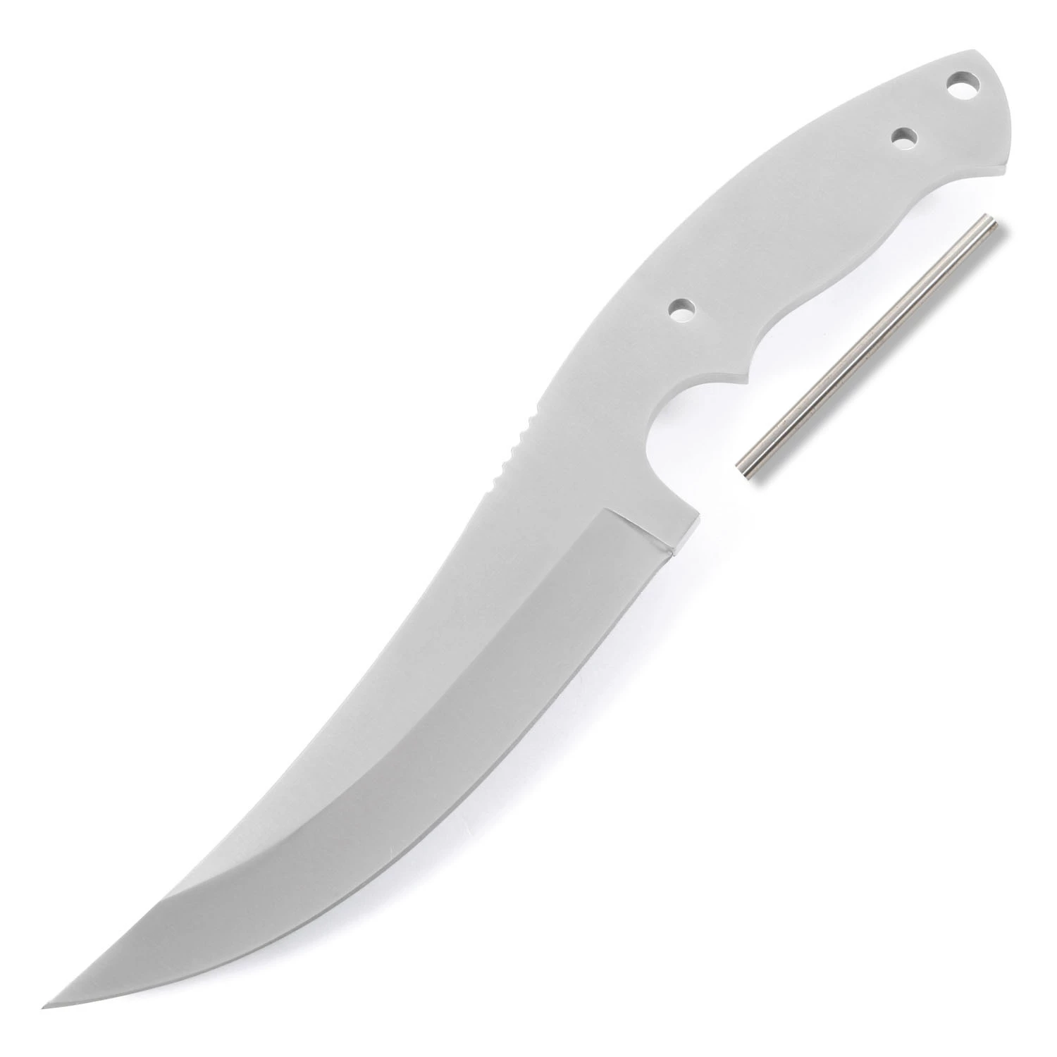 The Arctic Skinner is a great daily-carry sized skinning knife blade design. It has an overall length of 10.00 inches, with a blade length of 5.25 inches. This knife features an upswept skinner design. It is made from .156 inch thick 440C stainless steel. The blade grind is hollow and features a beautiful satin finish. This model comes pre-drilled with two (2) .187 inch tang holes for handle pins (stainless steel – included). This knife blank also has a .250 inch thong hole which is pre-drilled in the rear of the handle (thong hole tubing not included). The Artic Skinner is a very popular model, and makes a great project blade for a weekend knife making session. Spend some quality workshop shop time with this skinning knife project and enjoy the fun of custom knife making and customization.