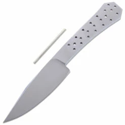 This version of the Blue Duck features the blade with handle pinstock only. It comes with the Blue Duck tapered tang blade and 0.125 inch stainless steel handle pinstock for basic construction. This version is perfect for builders who already have their own handle material.