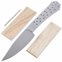 This version of the Blue Duck is the combo kit. It comes with the Blue Duck tapered tang blade plus Canarywood handle making scales and 0.125 inch stainless steel pinstock to simplify the completion process. This is a great project for a weekend knife making session. Spend some quality workshop time with this knife kit and enjoy the fun of making an awesome knife.