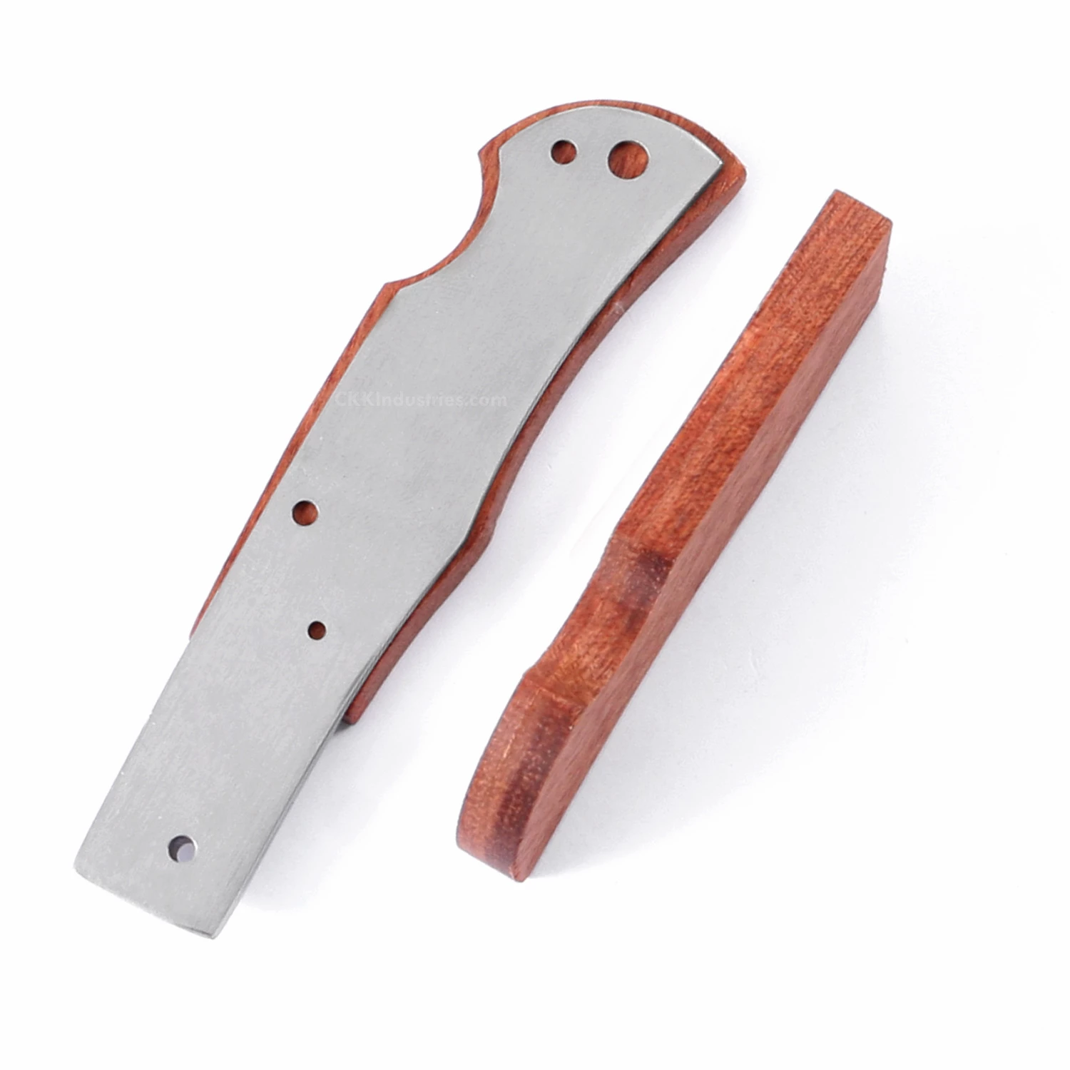 Our pre-machined knife handle scales are slightly thicker and larger in diameter than the handle liners that they are designed for. This allows for proper sanding, shaping and artistic embellishment. These are also undrilled to allow for precise placement control and to maximize fastening options. If you do not have a scroll saw to use for creating the required knife handle shape, or you just want to begin from an easier starting point, the combo kit with pre-machined knife handle scales will help you insure that your folding knife kit completion will be smooth and successful. Properly built, this folding lockback knife kit will produce a fantastic pocket knife for everyday use. It has fast lines and excellent lockup and action.