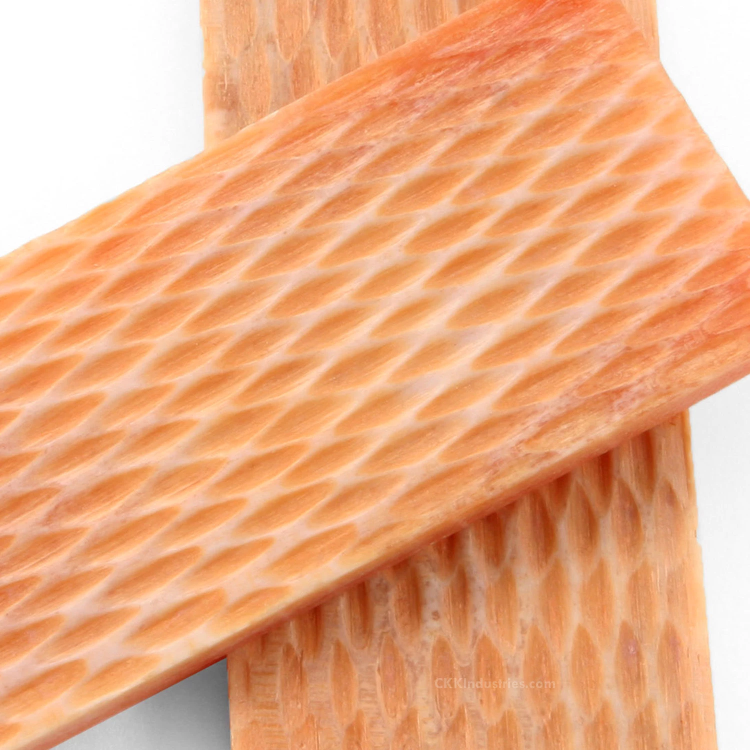 These are (Cobblestone Jigged) premium bone handle scale sets. They are sold in a matched pair and are dyed and stabilized for high finish performance and maximum durability. Jigged bone knife handle scales are very popular in knife and gun handle crafting. They are easy to work with using most common tools. They look great on any project when completed. Well-finished jigged bone scales add excellent value to custom finished work. If you’re looking to create that special custom knife, jewelry item, or art piece, these can be used for a thousand applications.