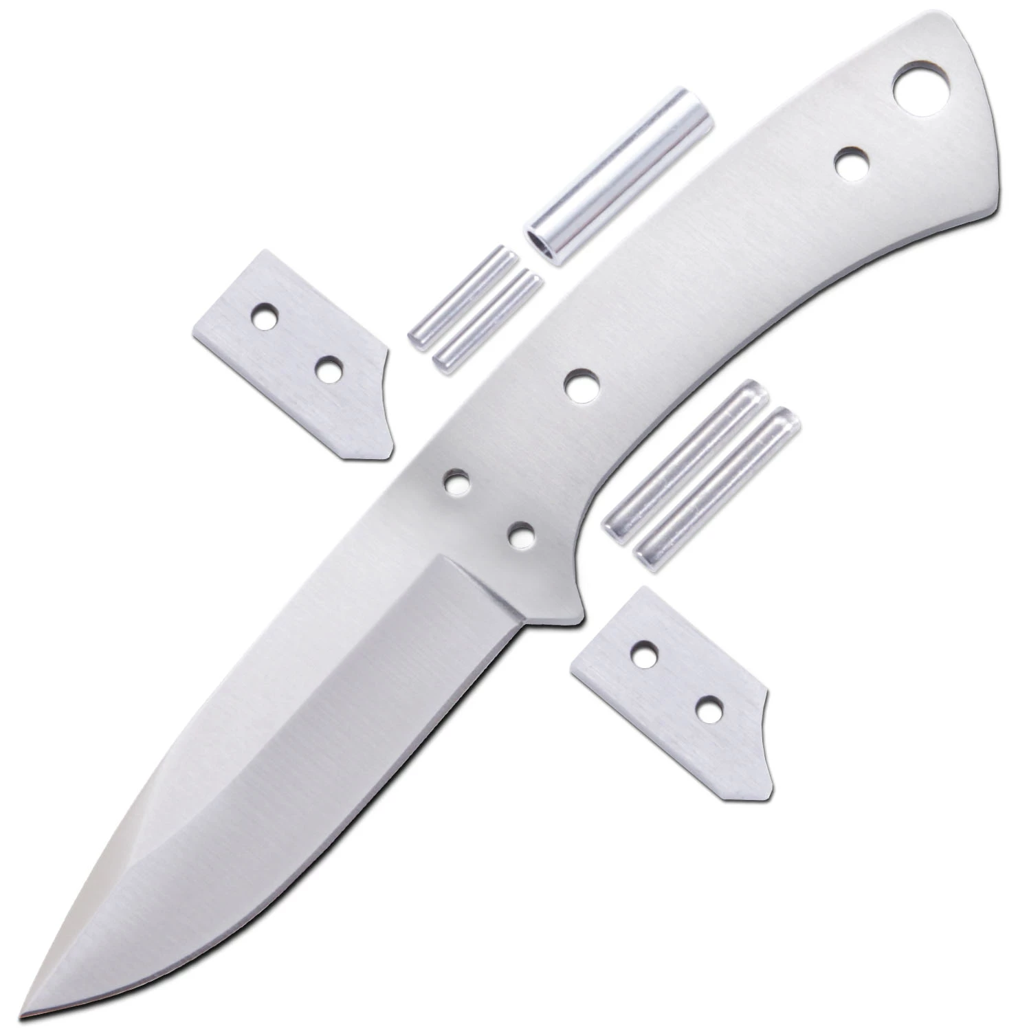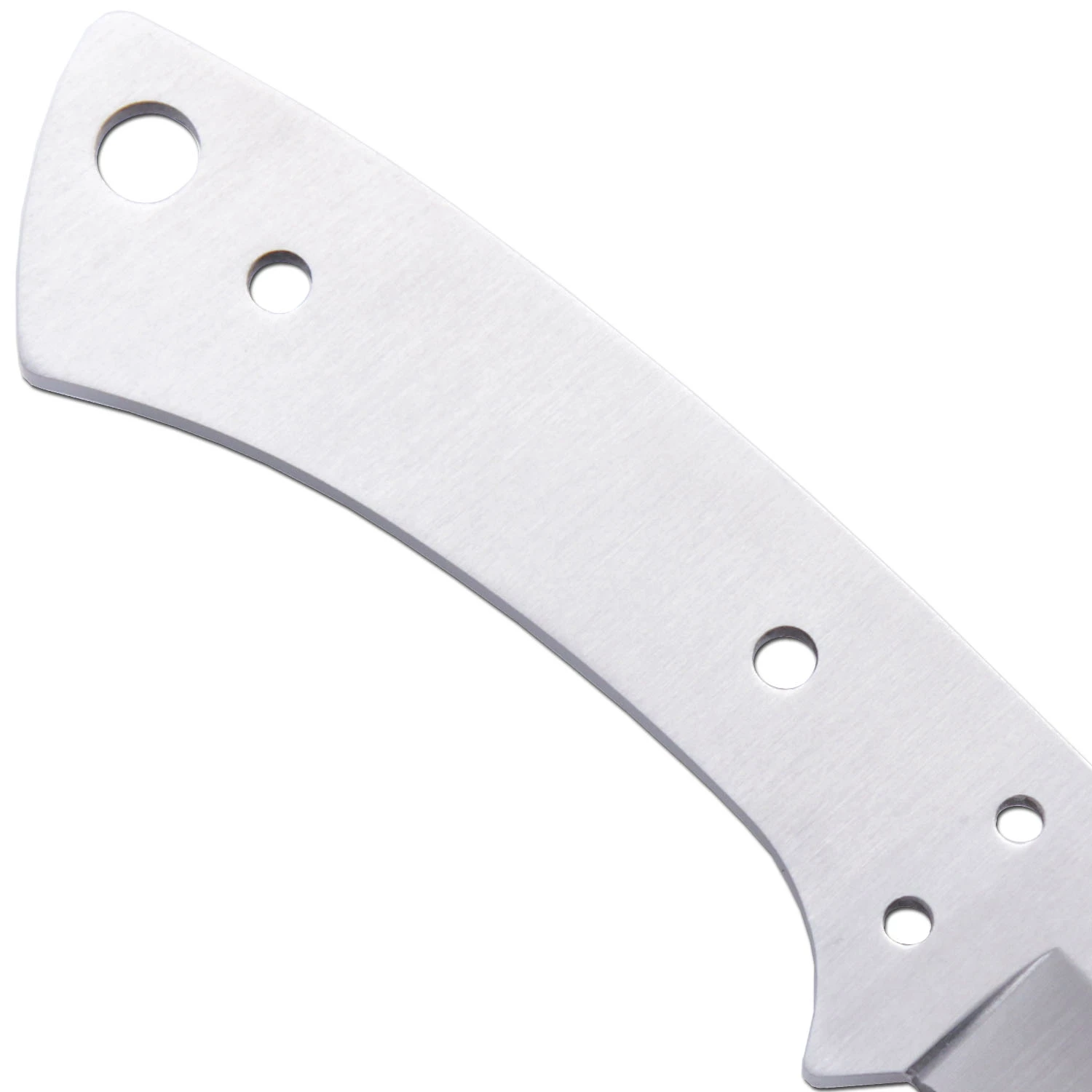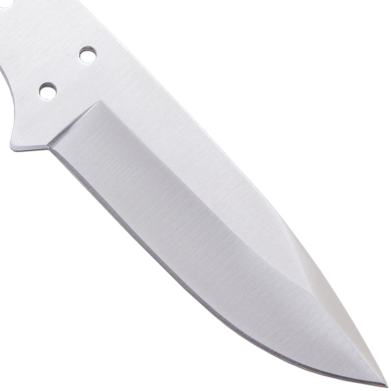 The Boot Skinner knife kit is a very high quality modern boot knife/skinner combo design. This design works well as a compact skinner knife(with traditional handle treatment) or as a concealable boot knife (with a tactical handle treatment). This skinning knife kit model is 6 inches overall with a 2.75 inch skinner blade. It comes standard with 420 stainless steel bolsters and matching 420 stainless steel bolster pins. The blade thickness on the boot skinner knife kit is 0.117 inches and feels great in the hand. The blade is constructed from high-performance AUS8 stainless steel and is hollow ground. This skinning knife design features (2) 0.125 inch bolster holes, (2) 0.156 inch tang holes (stainless steel handle pinstock included), and a 0.250 inch thong hole for optional use (stainless steel thong tubing included).