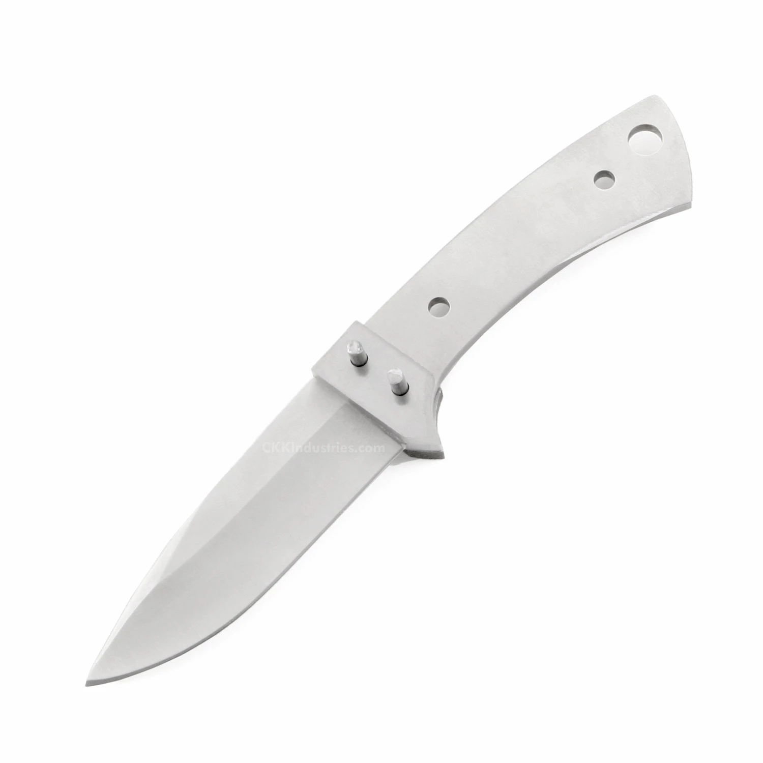 The Boot Skinner knife kit is a very high quality modern boot knife/skinner combo design. This design works well as a compact skinner knife (with traditional handle treatment) or as a utility knife (with a tactical handle treatment). This knife kit model is 6.00 inches overall with a 2.75 inch skinner blade. It comes standard with 420 stainless steel bolsters and matching 420 stainless steel bolster pins. The blade thickness on the Boot Skinner is 0.117 inches. It feels great in the hand. The blade is constructed from high-performance AUS8 stainless steel and is hollow-ground. This skinning knife design features (2) 0.125 inch bolster holes, (2) 0.156 inch tang holes (stainless steel handle pinstock included) and a 0.250 inch thong hole for optional use (stainless steel thong hole tubing included).