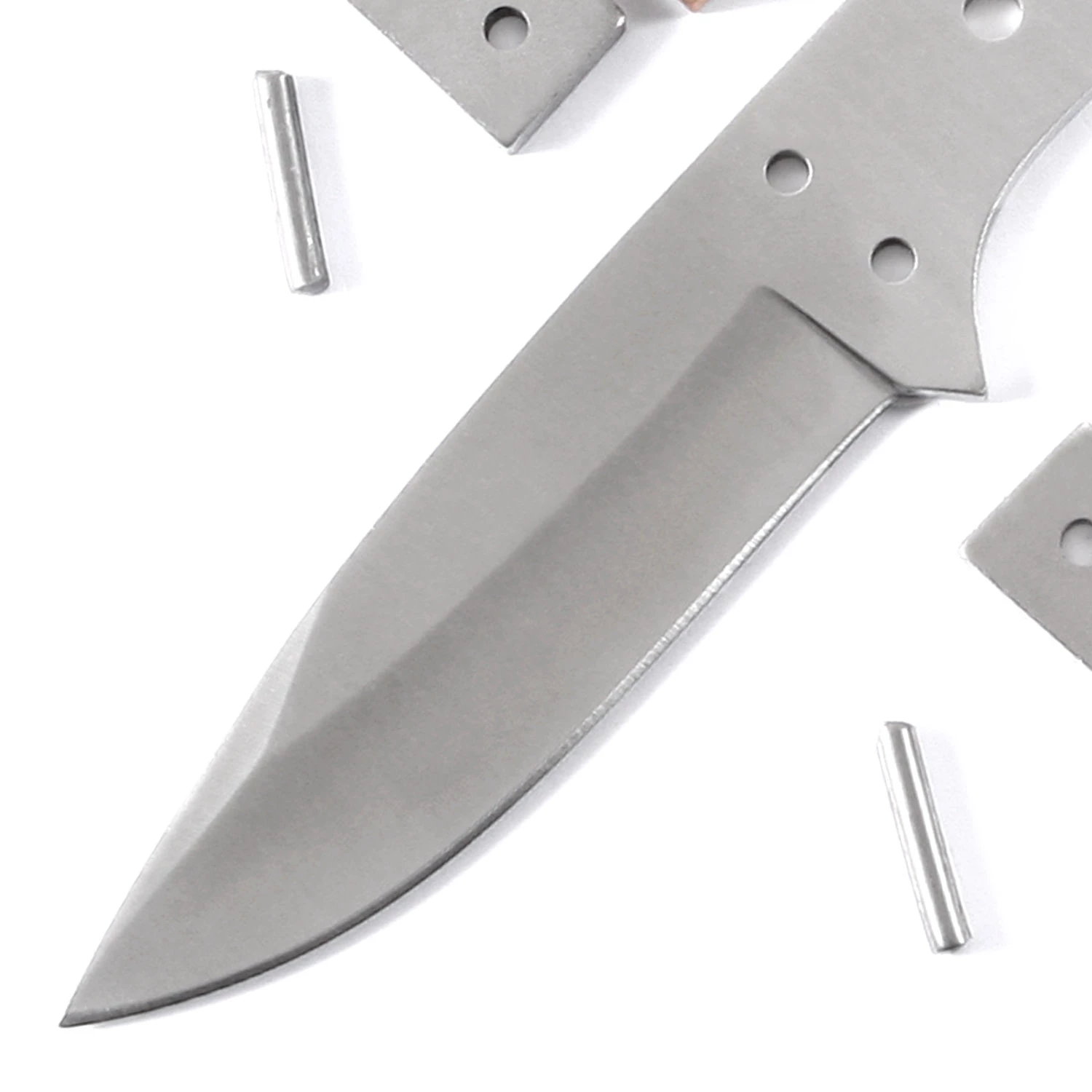 The blade thickness on the boot skinner is 0.117 inches. The blade is constructed from high-performance AUS8 stainless steel and is hollow ground. This skinning knife design features (2) 0.125 inch bolster holes, (2) 0.156 inch tang holes (stainless steel pinstock included) and a 0.250 inch thong hole for customer optioned lanyard (stainless steel thong hole tubing included).