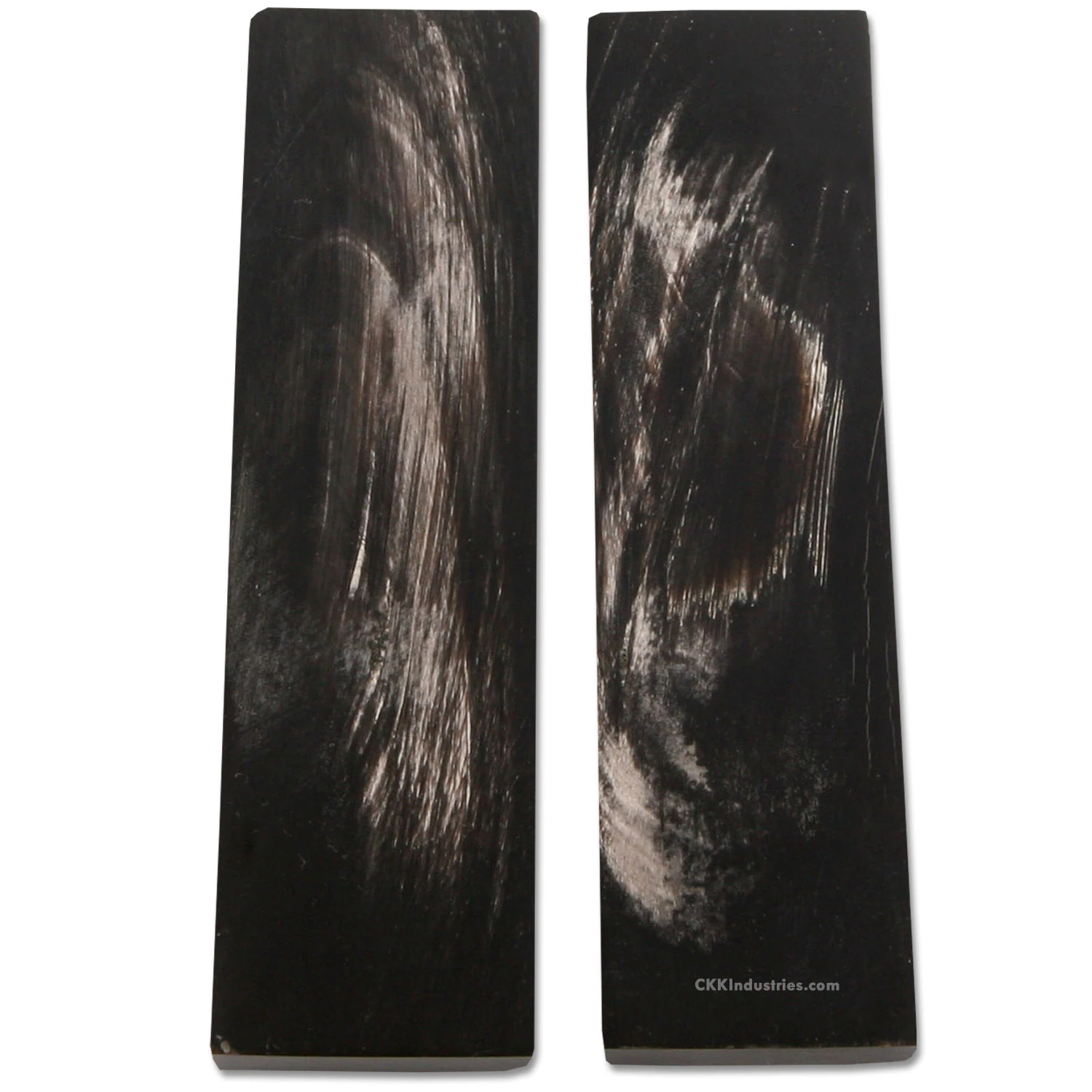 These are top quality Buffalo Horn knife handle scale sets with flat tops. They work great for making handles for full tang knives, folding knives, tool handles, and even art projects. Buffalo horn material is easily sanded to shape. They can be used alone or with other materials to create high end knife and tool handle effects.