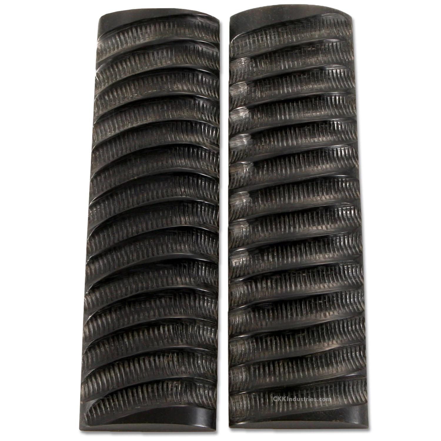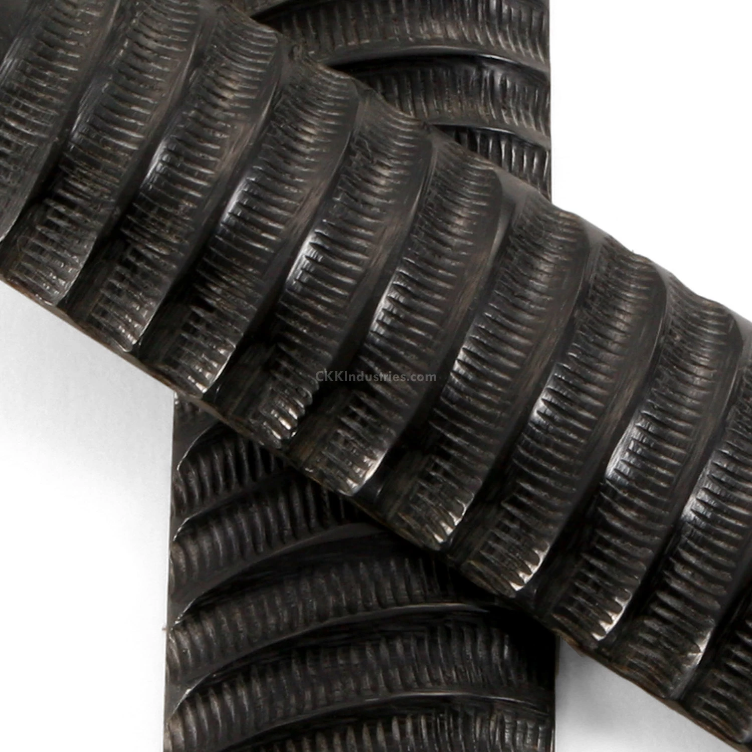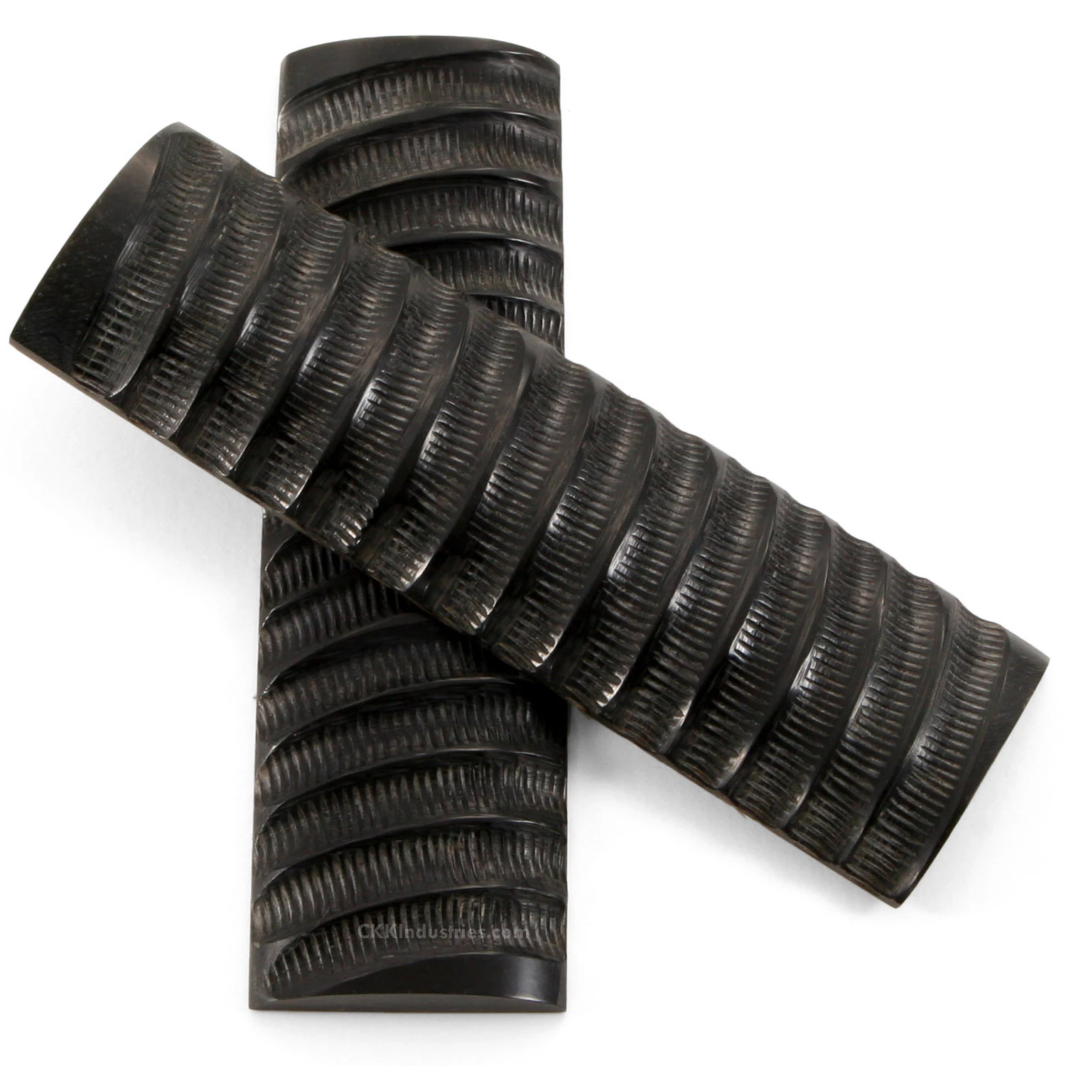 These are top quality Buffalo Horn knife handle scale sets with Impala jigging on their radiused top surface. They work great for making handles for full tang knives, folding knives, tool handles, and even art projects. Buffalo horn material is easily sanded to shape. They can be used alone or with other materials to create high end knife and tool handle effects.