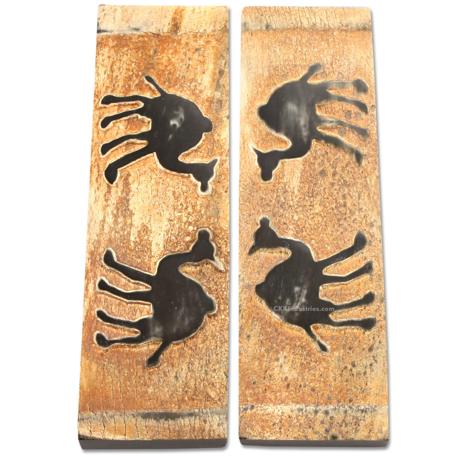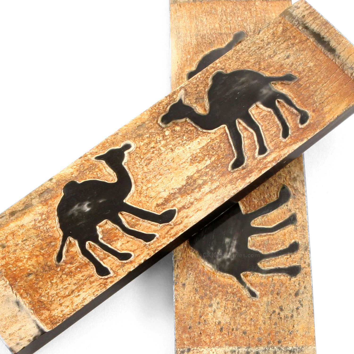 These are top quality Buffalo Horn knife handle scale sets with unique graphics carved into each piece. They work great for making handles for full tang knives, folding knives, tool handles, and even art projects. Buffalo horn material is easily sanded to shape. They can be used alone or with other materials to create high end knife and tool handle effects.
