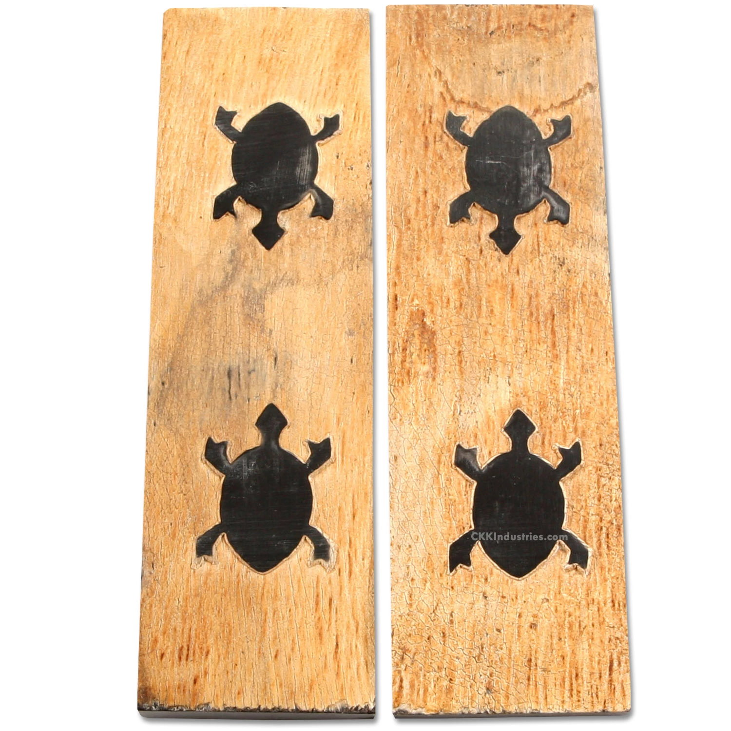 These are top quality Buffalo Horn knife handle scale sets with unique graphics carved into each piece. They work great for making handles for full tang knives, folding knives, tool handles, and even art projects. Buffalo horn material is easily sanded to shape. They can be used alone or with other materials to create high end knife and tool handle effects.