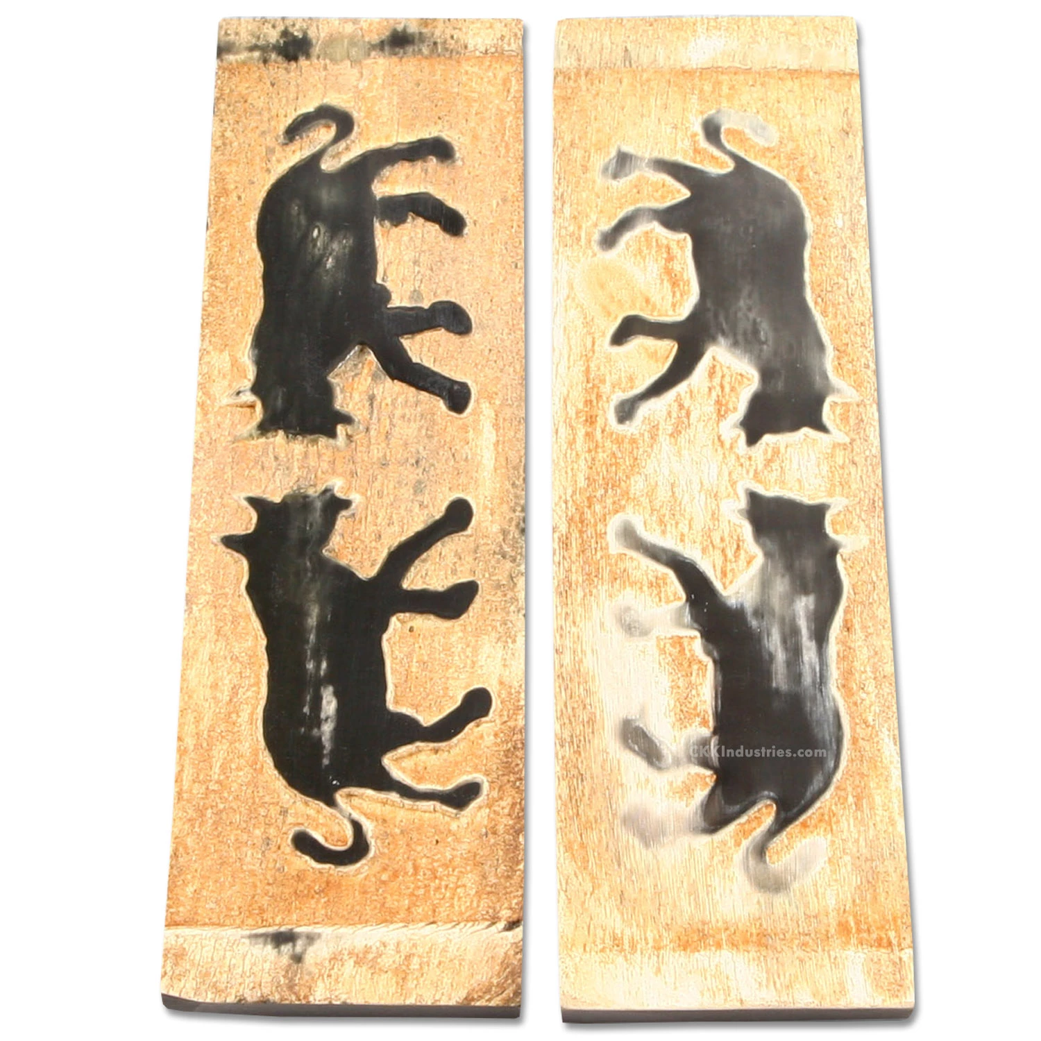 These are top quality Buffalo Horn knife handle scale sets with unique graphics carved into each piece. They work great for making handles for full tang knives, folding knives, tool handles, and even art projects. Buffalo horn material is easily sanded to shape. They can be used alone or with other materials to create high end knife and tool handle effects.
