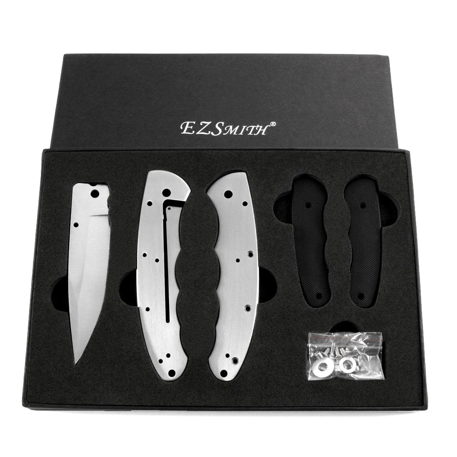Properly built, one can easily exceed the quality and performance found on many high end production folding knives available today. The modification options on this knife kit model are virtually limitless, as you can add filework, engraving, different handle treatments, and much more. The base unit is designed to be easily assembled and does not require any additional parts for standard completion (see finished standard model photos).