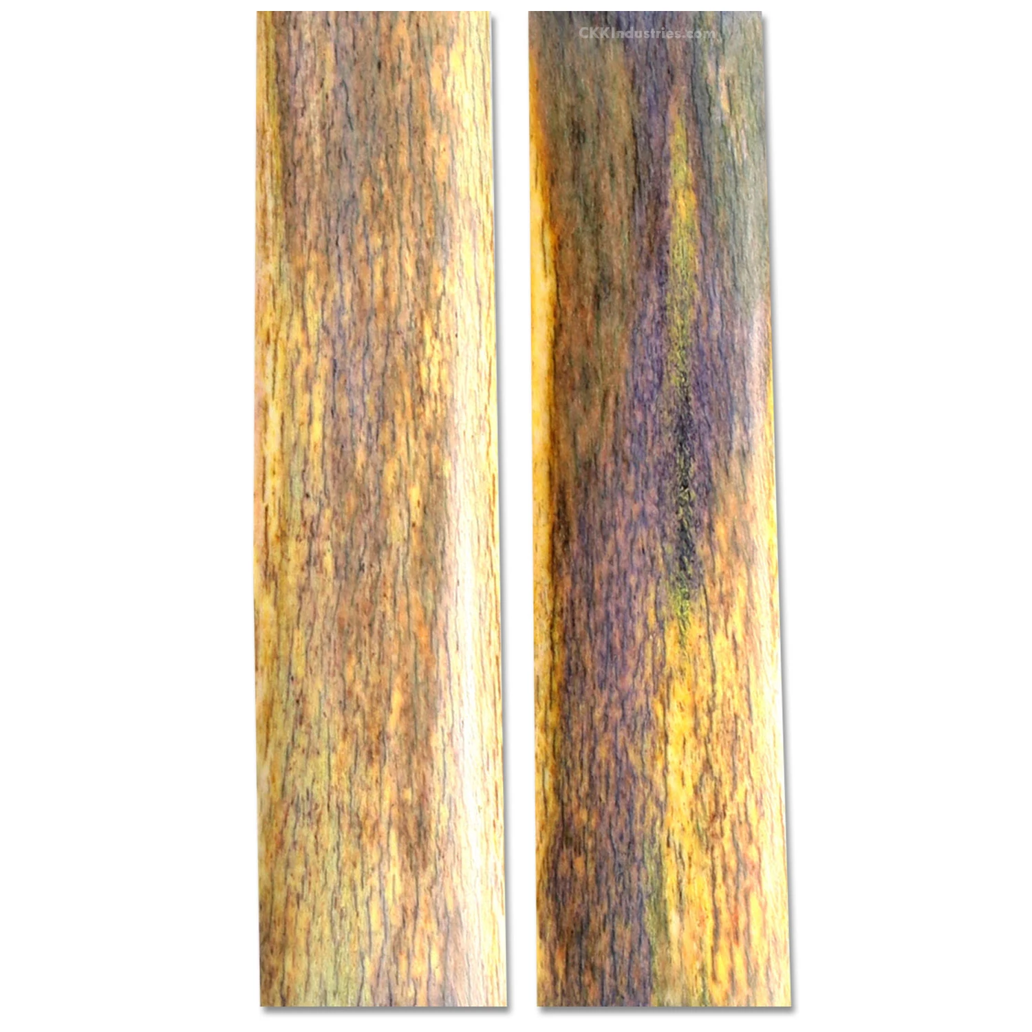 Camel bone has been used for centuries in handle construction. It is highly durable and can be sanded, fileworked, or carved with any sort of texture or artistic embellishment. In modern times, camel bone’s functionality has been increased by the use of dyes and pigments to change its look and character. Our camel bone materials have been naturally harvested and are fully dried. Each camel bone handle scale set has been inspected for conformation and size.