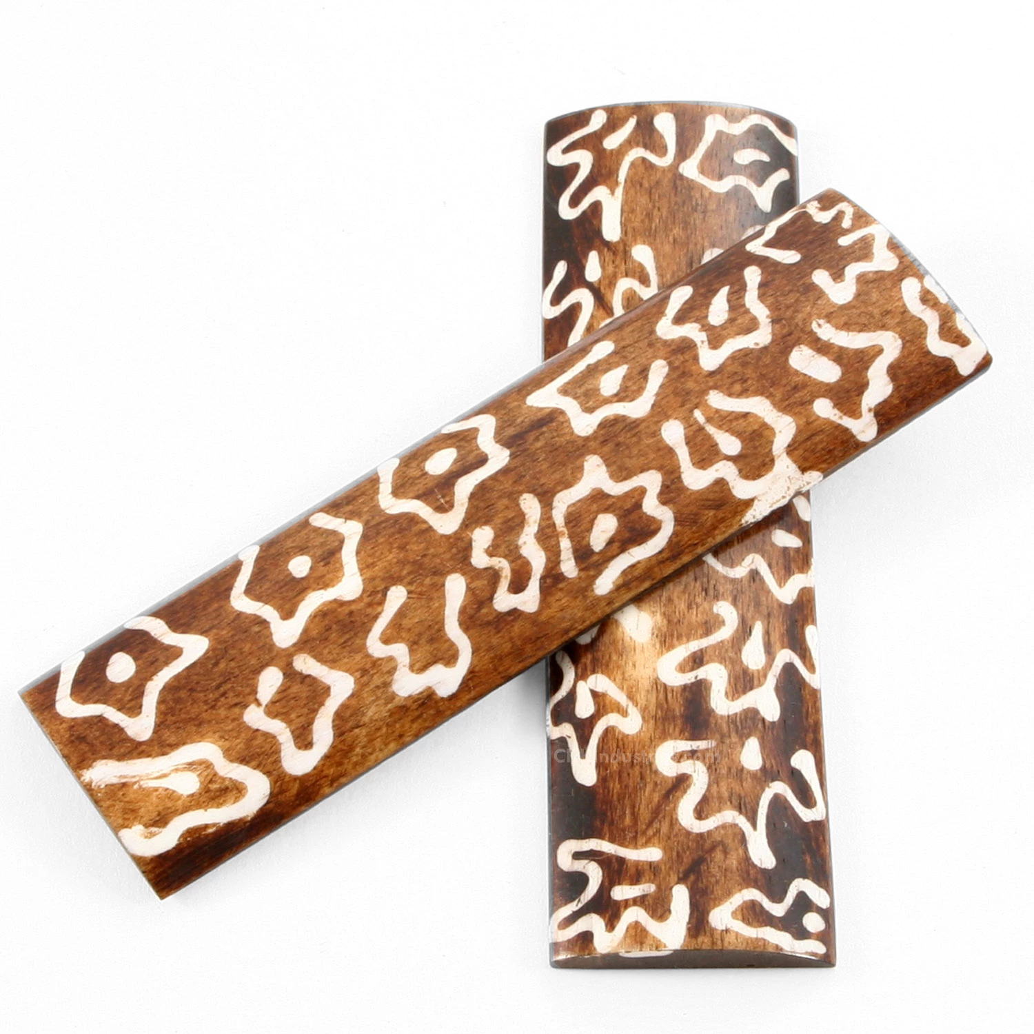 Camel bone has been used for centuries in handle construction. It is highly durable and can be sanded, fileworked, or carved with any sort of texture or artistic embellishment. In modern times, camel bone’s functionality has been increased by the use of dyes and pigments to change its look and character. Our camel bone materials have been naturally harvested and are fully dried. Each camel bone handle scale set has been inspected for conformation and size.