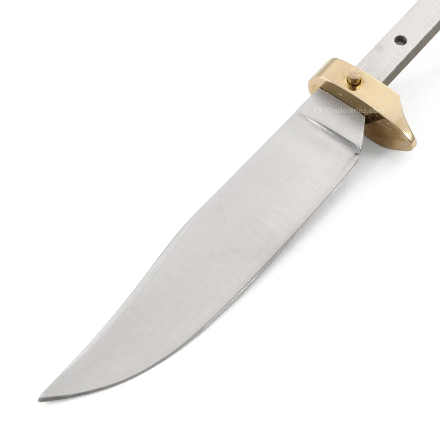 The newly redesigned Clip Point Scout is a hidden tang knife kit design that is modeled around the half-tang handle concept. This type of hidden tang design is perfect for use with antler tips, stag tapers, handle blocks, rolls and more. The blade on this model is AUS8 and is 0.625 inches wide at its widest point. The blade length is 3.375 inches and the thickness is 0.125 inches. It comes hollow ground, satin finished and has a brass slide-on finger guard with matching 0.093 inch pin. This is a great little knife kit, and is a fun, affordable and very simple project to complete. The hidden tang has a pre-drilled 0.093 inch diameter hole in it for use with any standard pin material, including mosaic pins, and hidden bolt fasteners (stainless steel pinstock included).