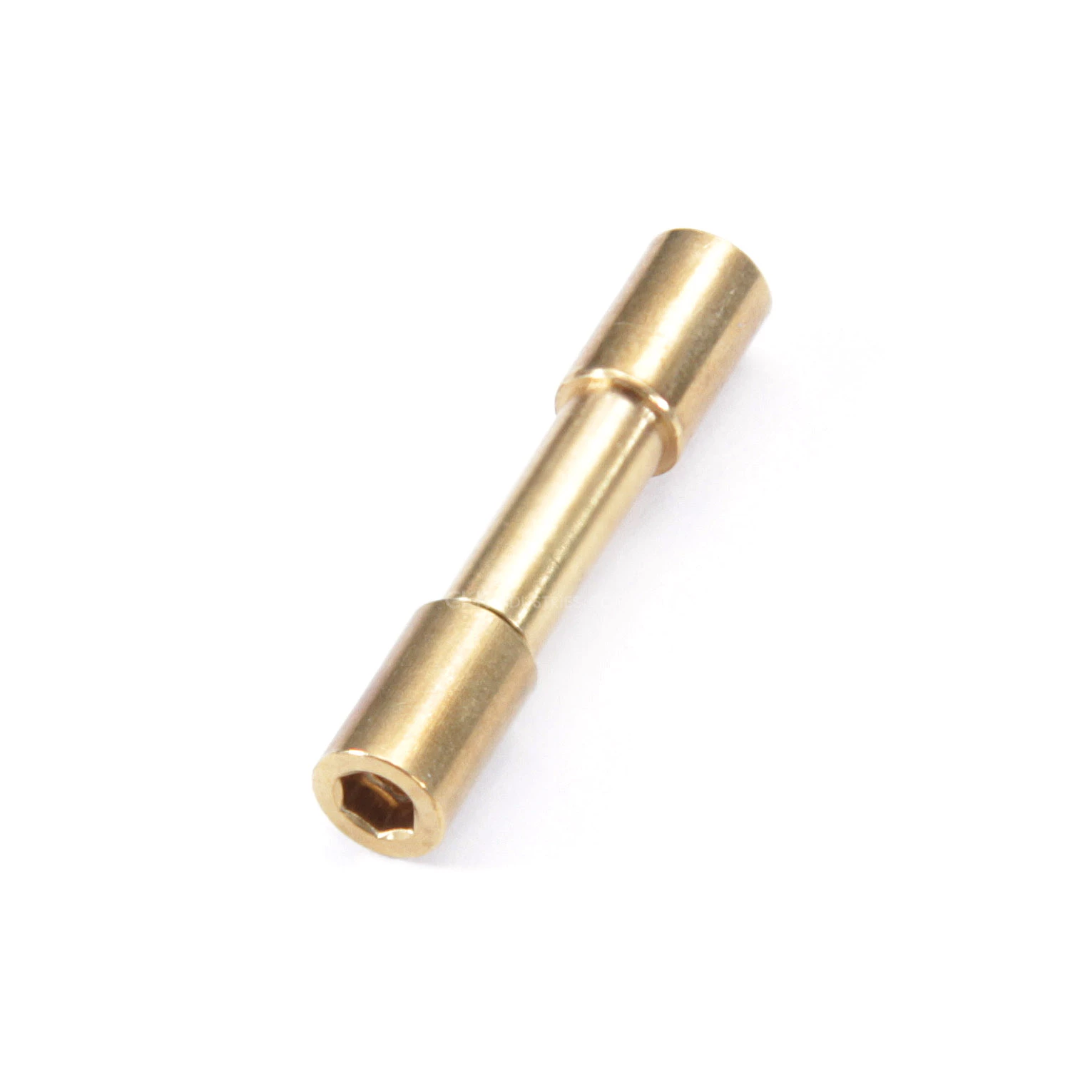 Corby Bolts are used for knife handle fasteners. With this design, you will create a step hole in your handle material that is slightly larger than the shank of the fastener. The two-part assembly allows for you to pass the shank precisely through your knife tang hole and handle material, allowing the larger radius of the Corby Bolt heads to create a pinch point on both sides of the handle material where it can then be tightened down to a secure hold. Once the bolt has been tightened, it can be sanded to a flush finish with the handle surface. This will result in a smooth, pin-like visual effect on the final knife handle. When used with epoxy and/or thread-locker adhesive, they will create a permanent handle bond.