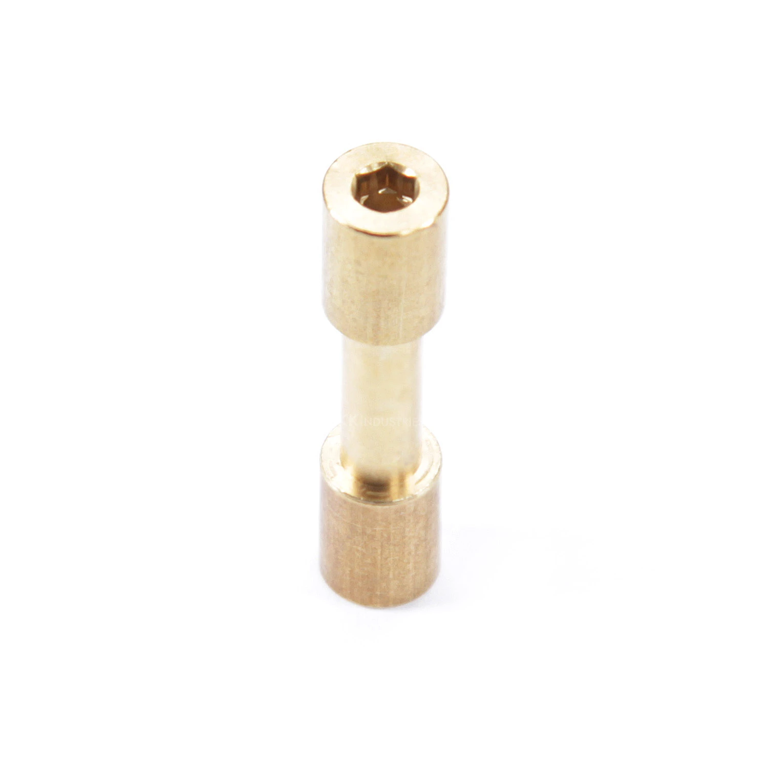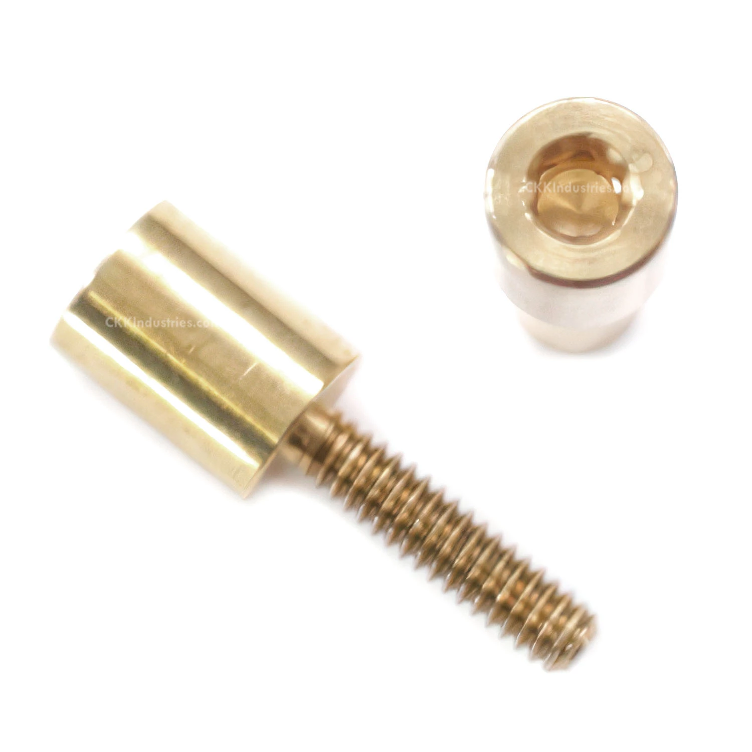 Corby Bolts are used for knife handle fasteners. With this design, you will create a step hole in your handle material that is slightly larger than the shank of the fastener. The two-part assembly allows for you to pass the shank precisely through your knife tang hole and handle material, allowing the larger radius of the Corby Bolt heads to create a pinch point on both sides of the handle material where it can then be tightened down to a secure hold. Once the bolt has been tightened, it can be sanded to a flush finish with the handle surface. This will result in a smooth, pin-like visual effect on the final knife handle. When used with epoxy and/or thread-locker adhesive, they will create a permanent handle bond.