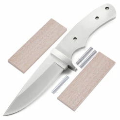 This version of the Drop Point Hunter is the combo kit. It comes with the Drop Point Hunter blade plus Mahogany handle scales, stainless steel pinstock, and a thong hole tube to simplify the completion process. This is a great project for a weekend knife making session. Spend some quality workshop time with this knife kit and enjoy the fun of custom knife making and customization.