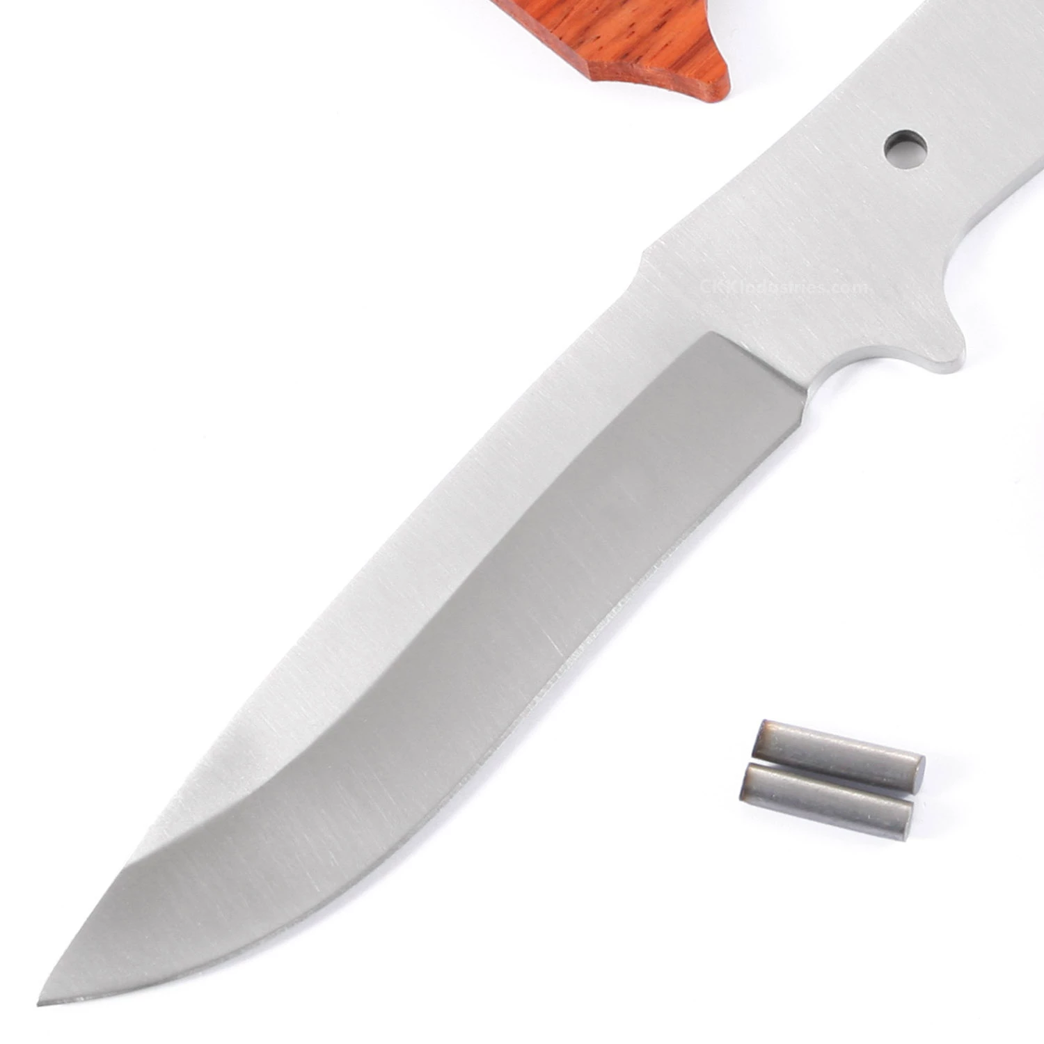 This tactical knife kit design features (2) .200 inch handle holes. Two (2) 0.195 inch stainless steel pins are included with the parts kit.