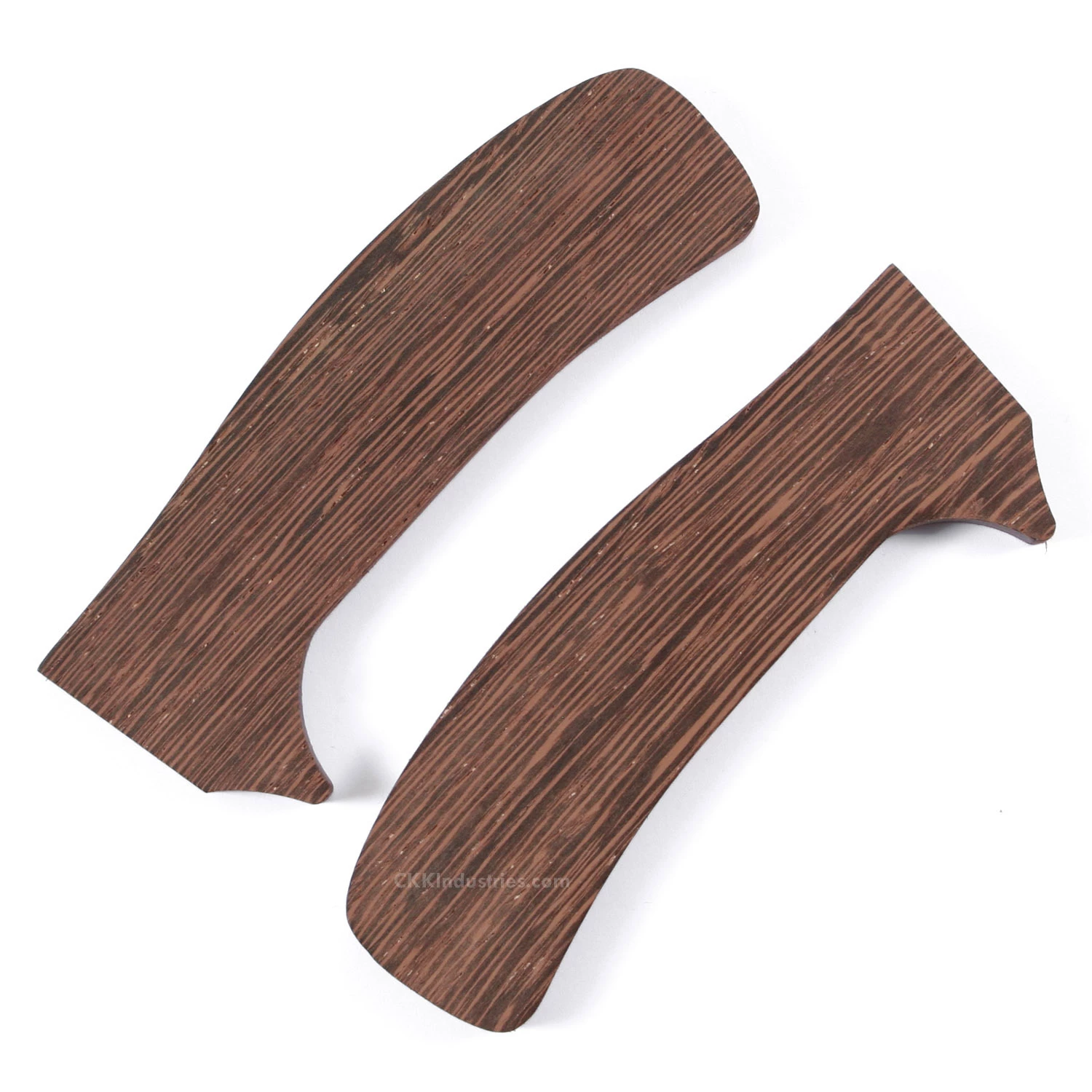 Our pre-machined handle scales are slightly thicker and larger in diameter than the handle tang that they are designed for. This allows for proper sanding, shaping and artistic embellishment. These are also undrilled to allow for precise placement control and to maximize fastening options. You can use standard SS pins (included), mosaic pins or a number of different styles of handle fasteners (see ). The choice is up to you. If you do not have a scroll saw to use for creating the required handle shape, or you just want to begin from an easier starting point, the combo kit with pre-machined scales will help you insure that your kit completion will be smooth and successful.