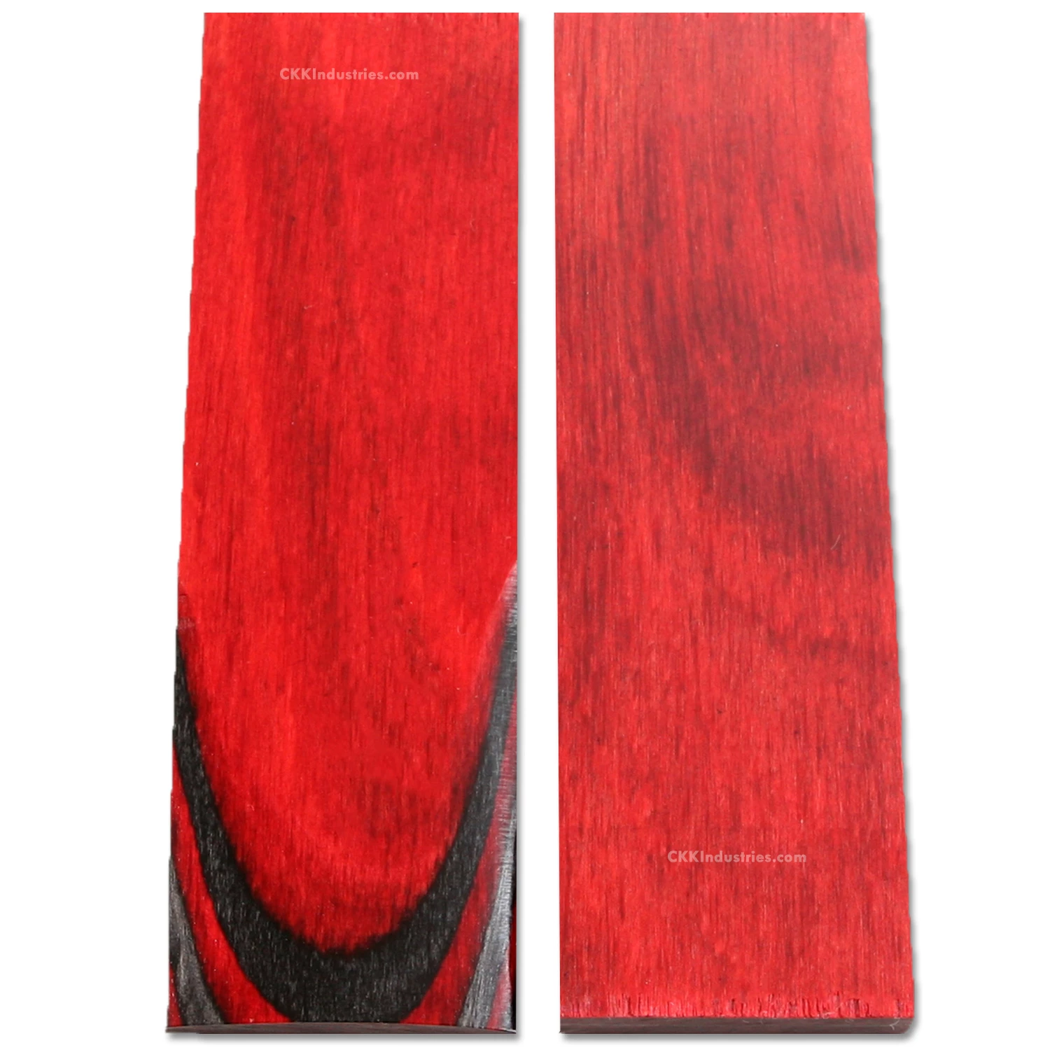 Dymalux™ knife handle material is very similar to Dymondwood in the way it looks, machines and performs. It is made from multiple laminated layers of dyed wood that is set in high-performance resin. Dymalux™ knife handle scales machine like butter and are easy to finish. This material makes a great option for custom knife and gun use as it’s highly durable, easy to work with, and attractive. Dymalux is very cost effective, making it a great option for testing handle treatments and finish sanding technique.