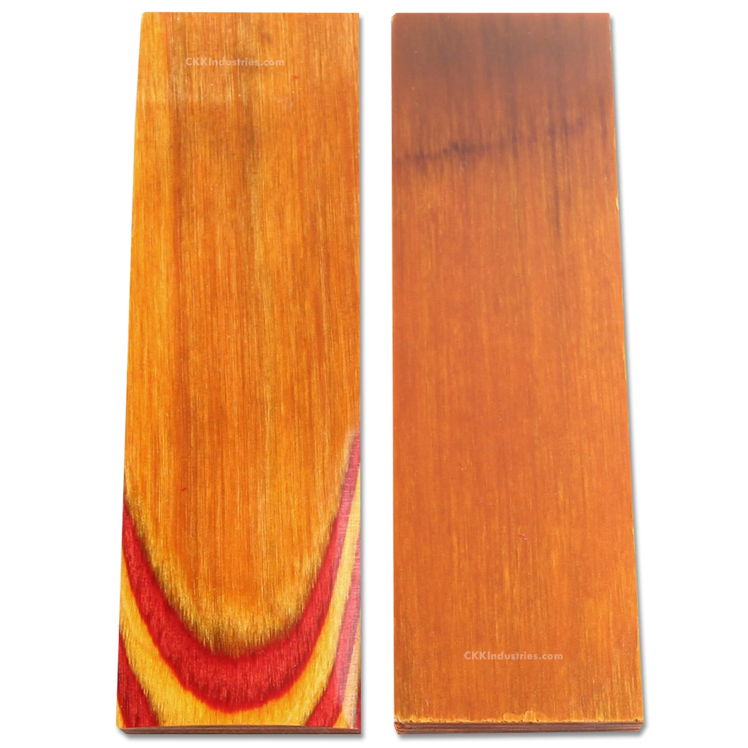 Dymalux™ knife handle material is very similar to Dymondwood in the way it looks, machines and performs. It is made from multiple laminated layers of dyed wood that is set in high-performance resin. Dymalux™ knife handle scales machine like butter and are easy to finish. This material makes a great option for custom knife and gun use as it’s highly durable, easy to work with, and attractive. Dymalux is very cost effective, making it a great option for testing handle treatments and finish sanding technique.