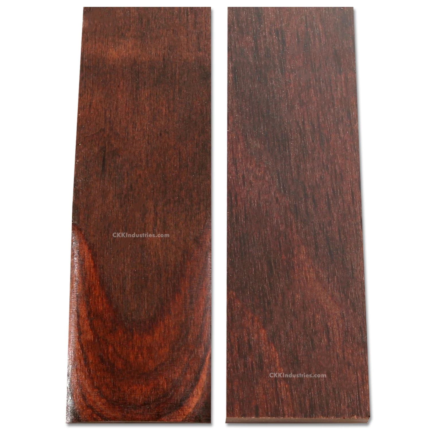 Dymalux™ knife handle material is very similar to Dymondwood in the way it looks, machines and performs. It is made from multiple laminated layers of dyed wood that is set in high-performance resin. Dymalux™ knife handle scales machine like butter and are easy to finish. This material makes a great option for custom knife and gun use as it’s highly durable, easy to work with, and attractive. Dymalux is very cost effective, making it a great option for testing handle treatments and finish sanding technique.