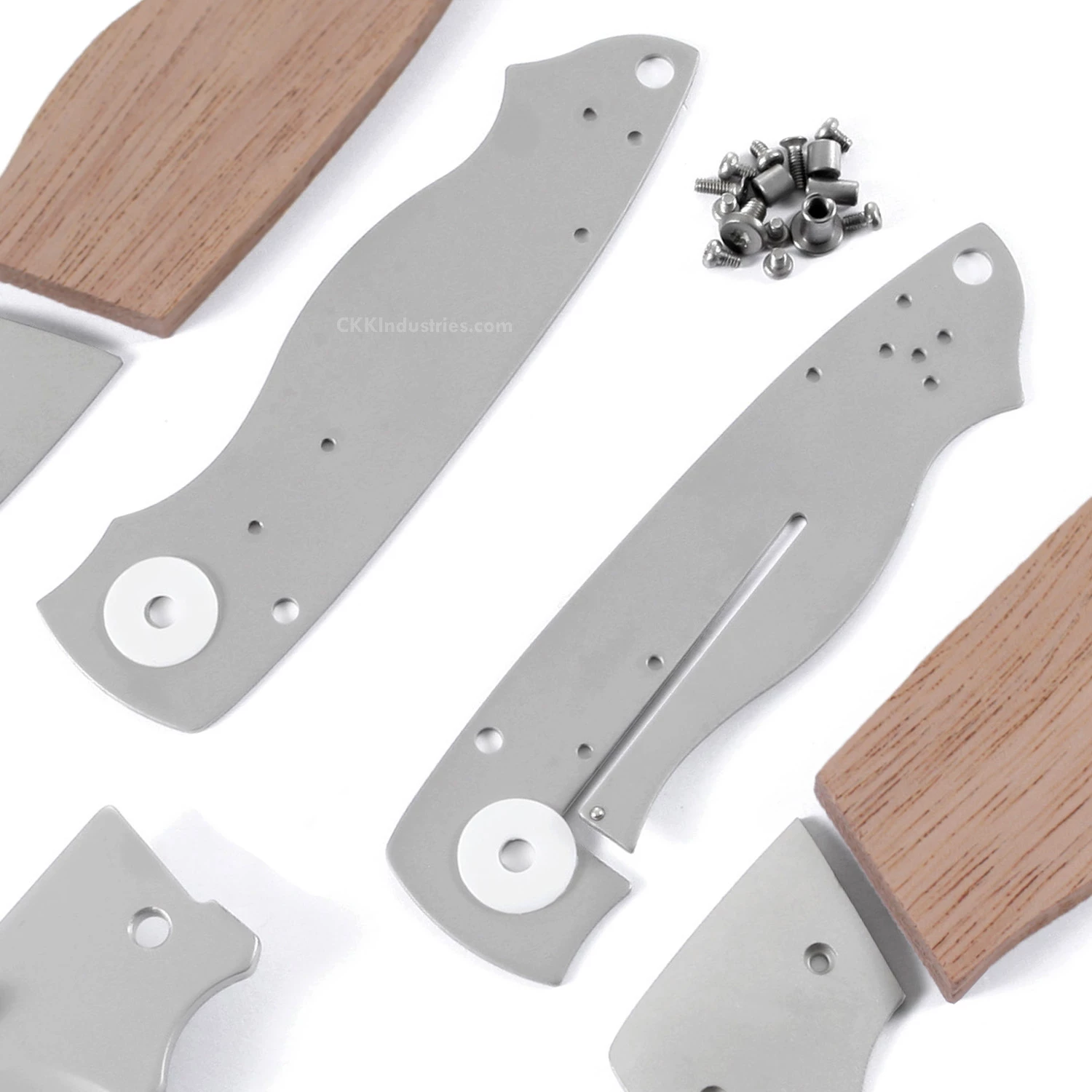Our pre-machined handle scale blanks are slightly thicker and larger in diameter than the handle liners they are designed for. This allows for proper sanding, shaping, and artistic embellishment. These are also undrilled to allow for precise placement control and to maximize fastening options. If you do not have a scroll saw to use for creating the required handle shape or you just want to begin from an easier starting point, the combo kit with pre-machined scales will help you insure that your kit completion will be smooth and successful.