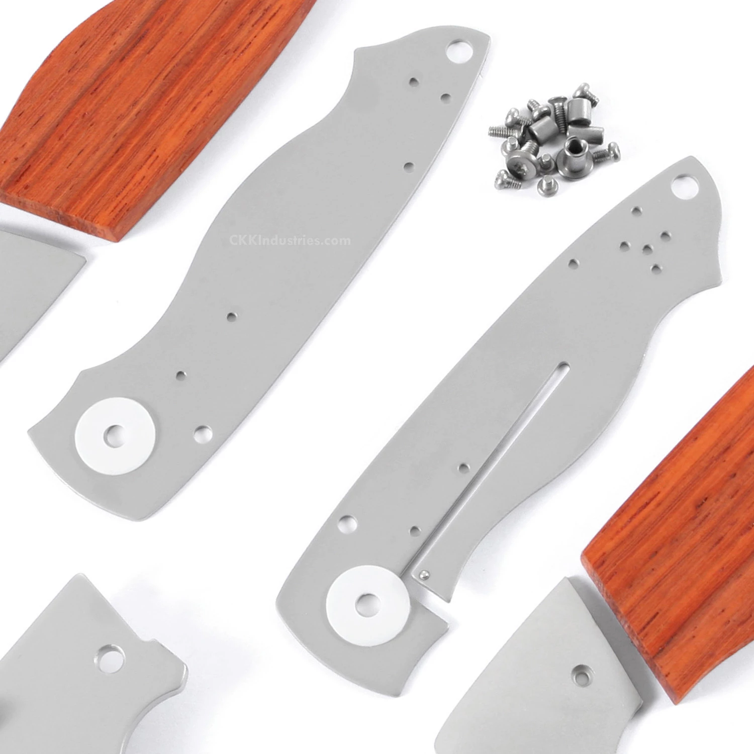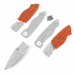 The EV4N1 folding knife kit is one of the most popular designer knife kits on the market. This pocket knife kit model features an AUS-8 cryo-treated blade, heat-treated stainless liners, pre-radiused bolsters, and precision screws. Based on its ability to be highly modified, the EV4N1 folding knife kit has a Skill Rating of a II-IV project. This version is the combo kit. It comes with all of the EV4N1 basic kit parts, plus pre-machined Padauk handle scales to simplify the completion process. Add a touch of proper finishing, and create a fabulous folding knife.