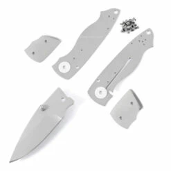 The EV4N1 folding knife kit is one of the most popular designer knife kits on the market. This pocket knife kit model features an AUS-8 cryo-treated blade, heat-treated stainless liners, pre-radiused bolsters, and precision screws. Based on its ability to be highly modified, the EV4N1 folding knife offers plenty of canvas for artistic knife embellishment. The base knife kit parts comes with everything shown with the exception of handle material. Handle material is optional. This version is the (parts kit only) and is commonly selected by builders who have their own handle material or design in mind.