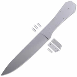 The size of the Vintage Bowie is 10.25 inches overall with a 6.0 inch blade length. The blade is made from 9Cr13CoMoV (Equivalent SUS440C) stainless steel and features a 5.65 inch cutting edge. The blade width is 1.12 inches at the widest point and is 0.125 inches thick. The design features stainless steel bolsters and comes with (6) tang holes for handle fastening. All bolster and handle pins are included with this Master Series design.