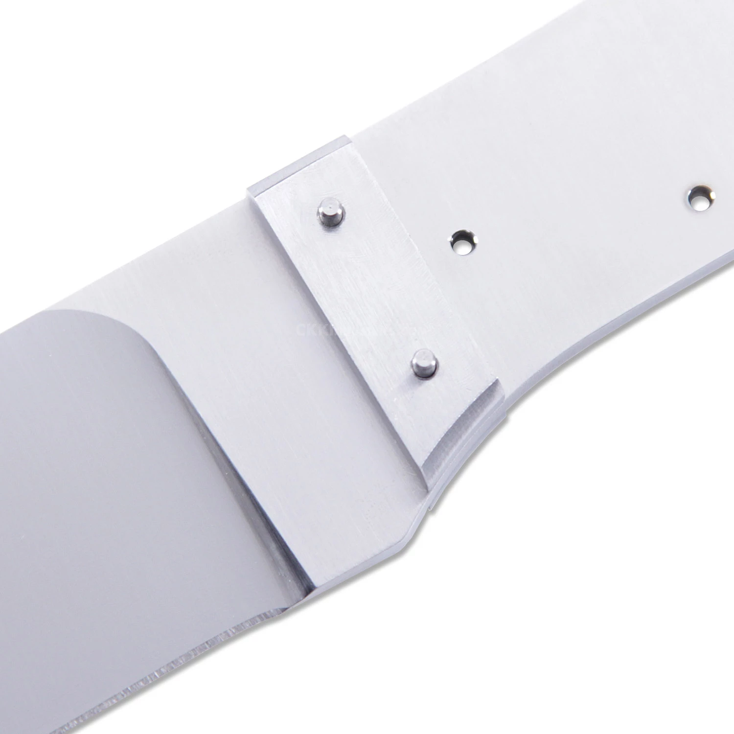 The size of the Vintage Bowie is 10.25 inches overall with a 6.0 inch blade length. The blade is made from 9Cr13CoMoV (Equivalent SUS440C) stainless steel and features a 5.65 inch cutting edge. The blade width is 1.12 inches at the widest point and is 0.125 inches thick. The design features stainless steel bolsters and comes with (6) tang holes for handle fastening. All bolster and handle pins are included with this Master Series design.