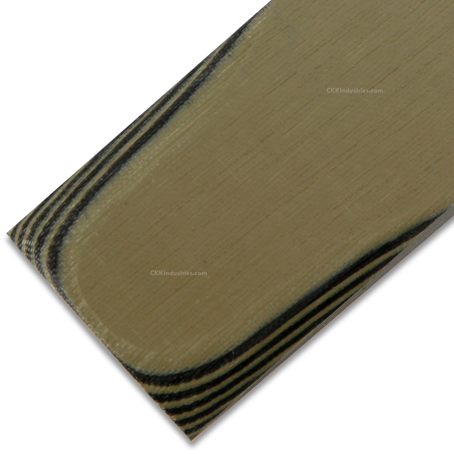 G10 is excellent handle material and is used widely on many styles of knives and guns. Our standard G10 multi-color material is the industry standard layered composite. It machines like butter and looks top-notch when finished!
