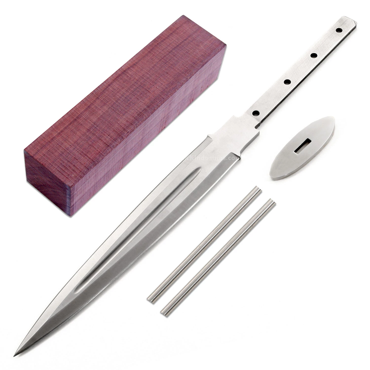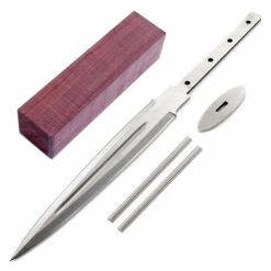 This version of the Gentleman Dirk is the combo kit. It comes with the Gentleman Dirk Blade, guard, stainless steel pinstock, and a premium block of Katalox handle material to simplify the completion process. This is a great project blade for a weekend knife making session. Spend some quality workshop time with this excellent hidden tang knife kit and enjoy the fun of custom knife making and customization.