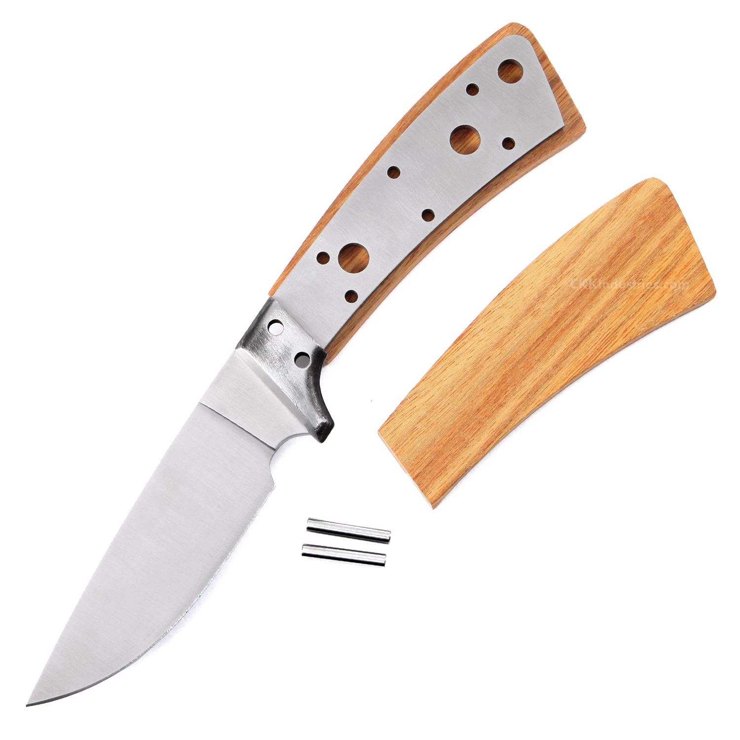 Our pre-machined knife handle scales are slightly thicker and larger in diameter than the handle tang they are designed for. This allows for proper sanding, shaping and artistic embellishment. They are also undrilled to allow the builder precise placement control and to maximize fastening options. This model includes stainless steel bolster and handle pins. If you do not have a scroll saw to use for creating the required handle shape, or you just want to begin from an easier starting point, using these pre-machined scales will help you insure that your kit completion will be smooth and successful.