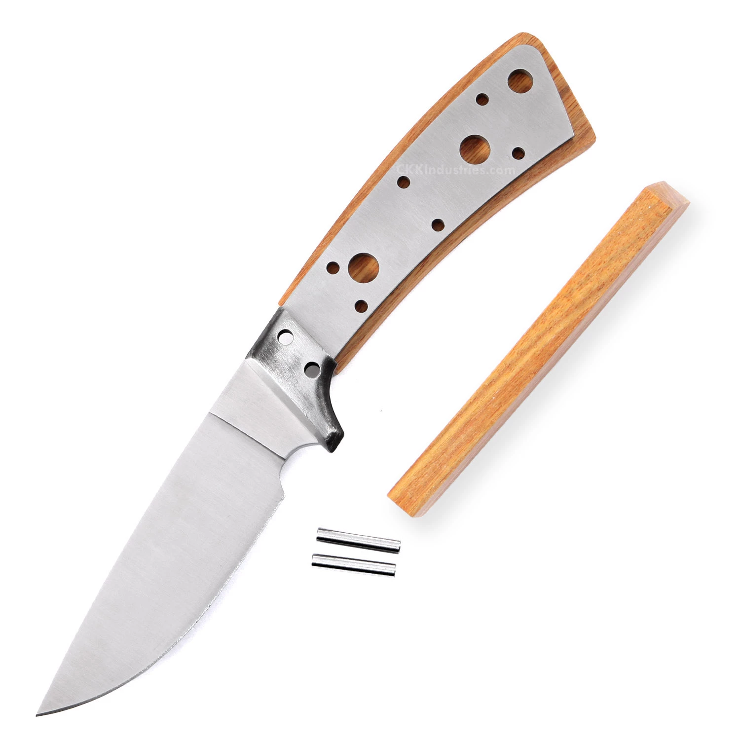 This is a full tang knife blank design that can be built in multiple ways. Fully bolstered and pinned, it’ll make a great skinner blade. With a full handle treatment, it’ll make a great concelable neck or EDC boot knife.This version is the combo kit. It comes complete with blade, bolsters and pins, and includes pre-machined Canarywood handle material for easy kit completion. Invest a fun afternoon in your shop or study and create an excellent knife that you will be proud of for a lifetime.