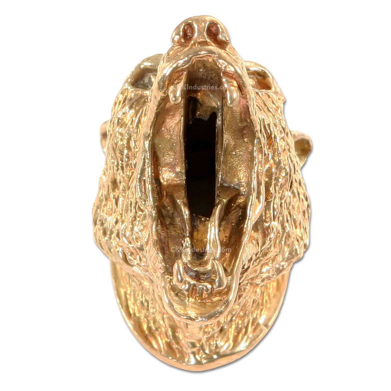 This guard features an engraved Growling Bear head surface. It can be adapted to complete a hidden tang custom knife design by slipping over the tang of the knife. This model features a pre-cut slot, which can be easily modified for tang fit, and offers a deep slipover cavity for versatile handle fitting. This is a very high-quality, hand cast part!