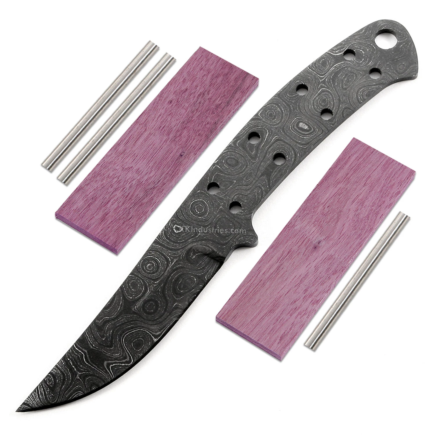 This version of the Jim Dandy is the combo kit. It comes with the Jim Dandy blade plus Purpleheart handle scales and stainless steel pinstock to simplify the completion process. This is a great project for a weekend knife making session. Spend some quality workshop time with this knife kit and enjoy the fun of custom knife making and customization.