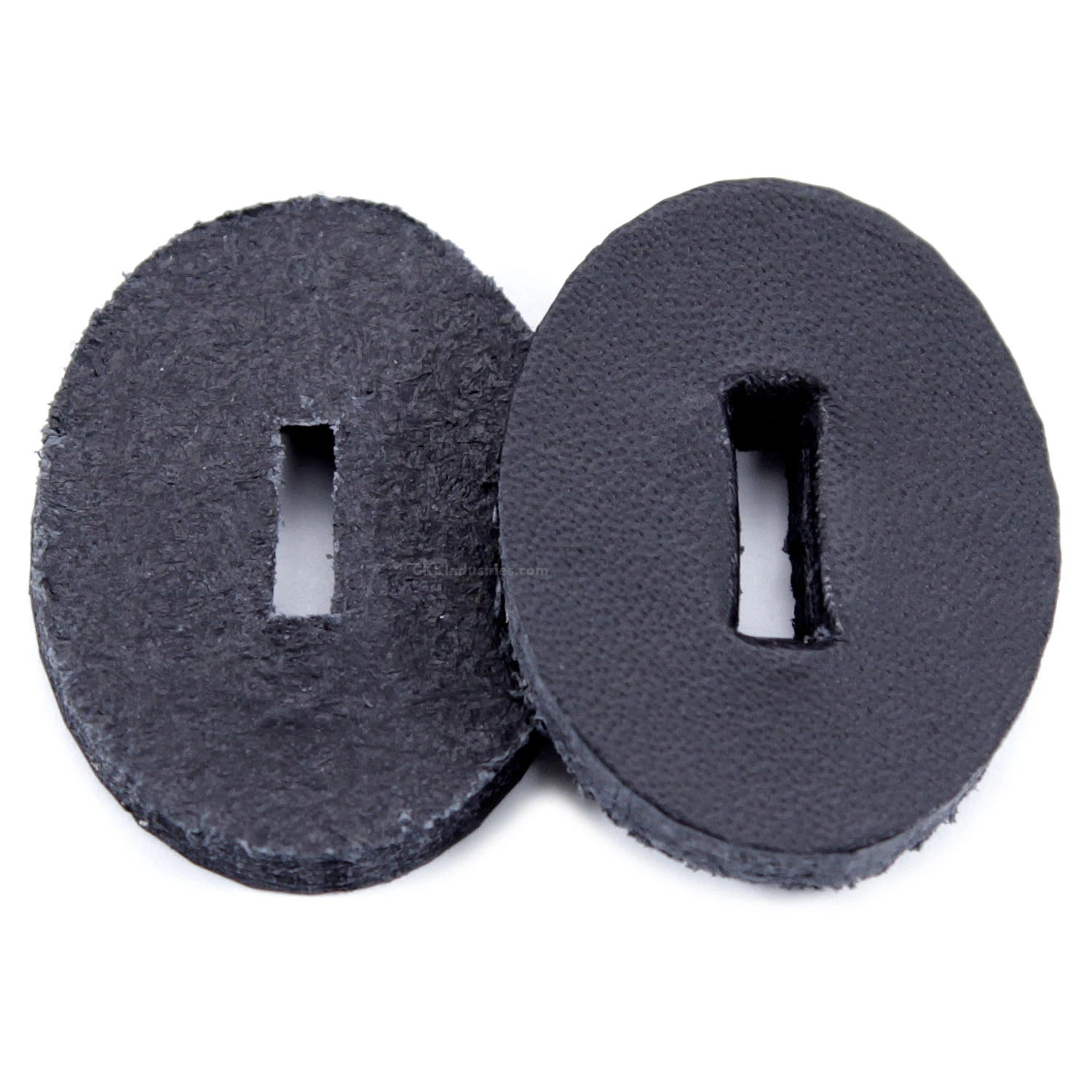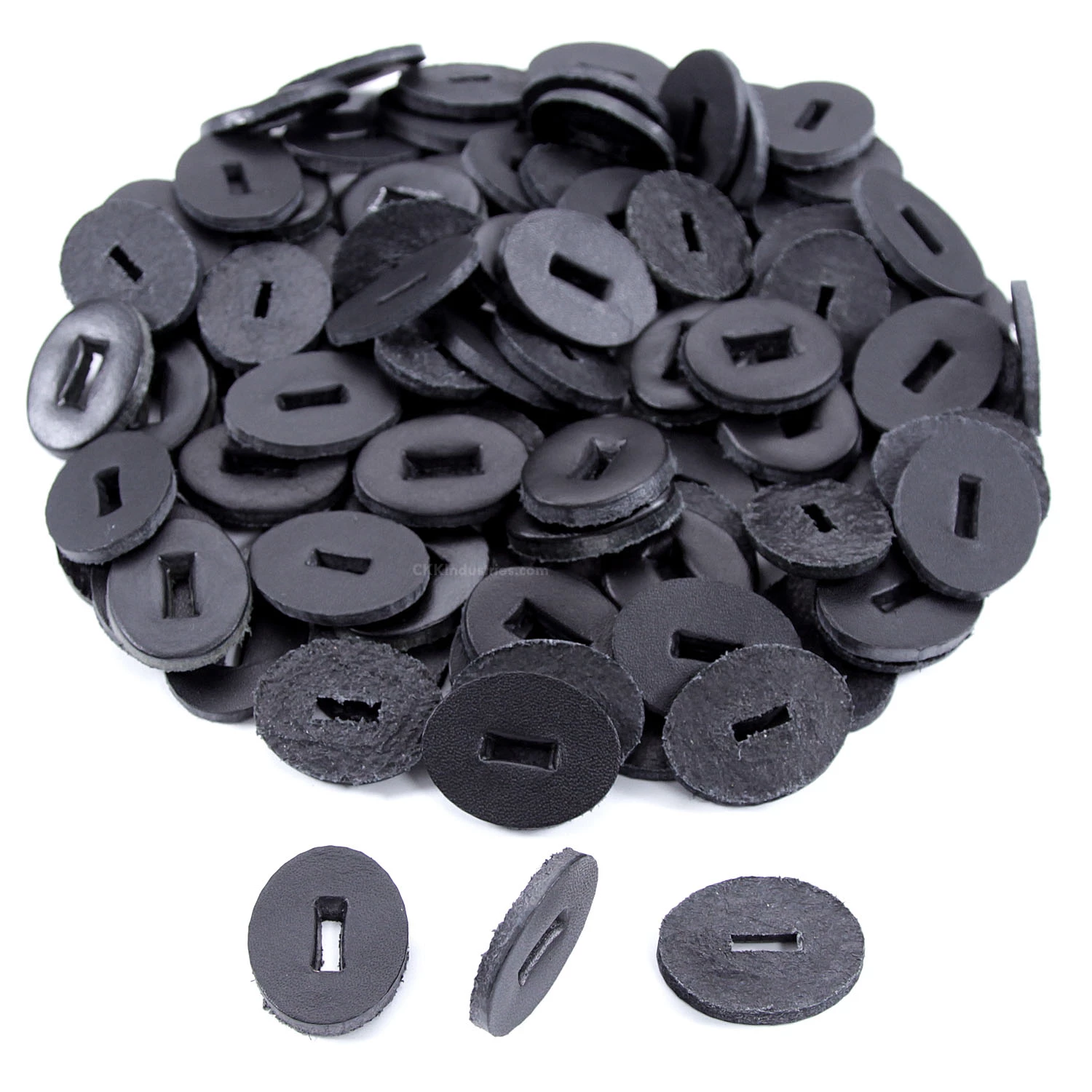 These are 1.30 x 1.00 x .125 inch leather handle washers. They are commonly used for creating custom handles on hidden tang knives. The inner opening is 0.40 x 0.120 inches and is designed for sliding over the tang of a knife. Once they are stacked, they can then be compressed into a uniform handle shape. After stacking and tightening, they can be sanded into the final handle configuration. These are high quality leather parts that are punched out of top-grain cowhide in our USA facility. Once finished, they create excellent handles for knives and tools, and feature high-griping, durable surfaces. This style of handle treatment has been used throughout history and is still one of the best performing ever developed. They are noted for creating one of the most comfortable handle treatments available. This type of knife handle is also quite simple to construct, and will last a lifetime.