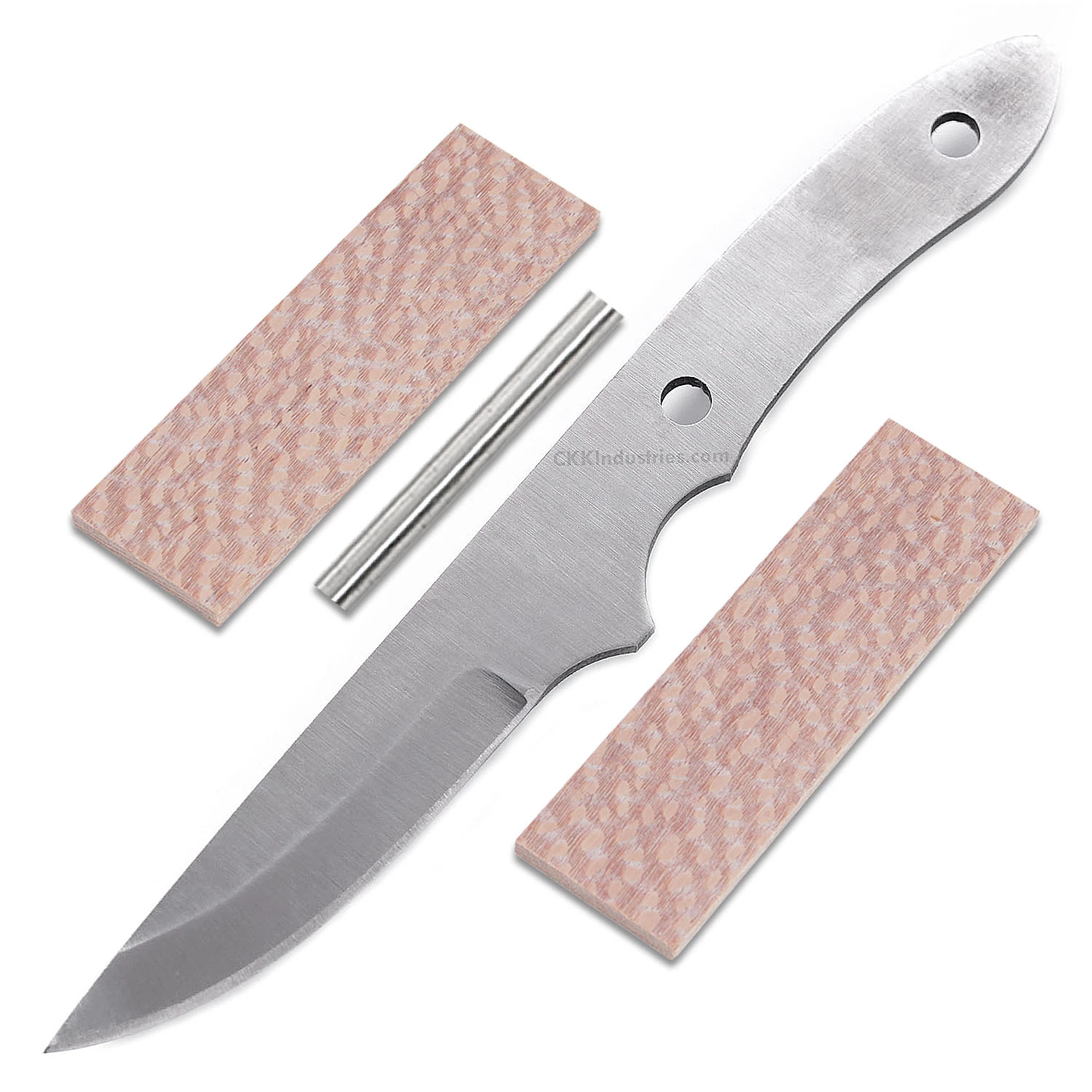 This version of the Little Viper is the combo kit. It comes with the Little Viper blade plus Lacewood handle scales and stainless steel pinstock to simplify the completion process. This is a great project for a weekend knife making session. Spend some quality workshop time with this knife kit and enjoy the fun of custom knife making and customization.