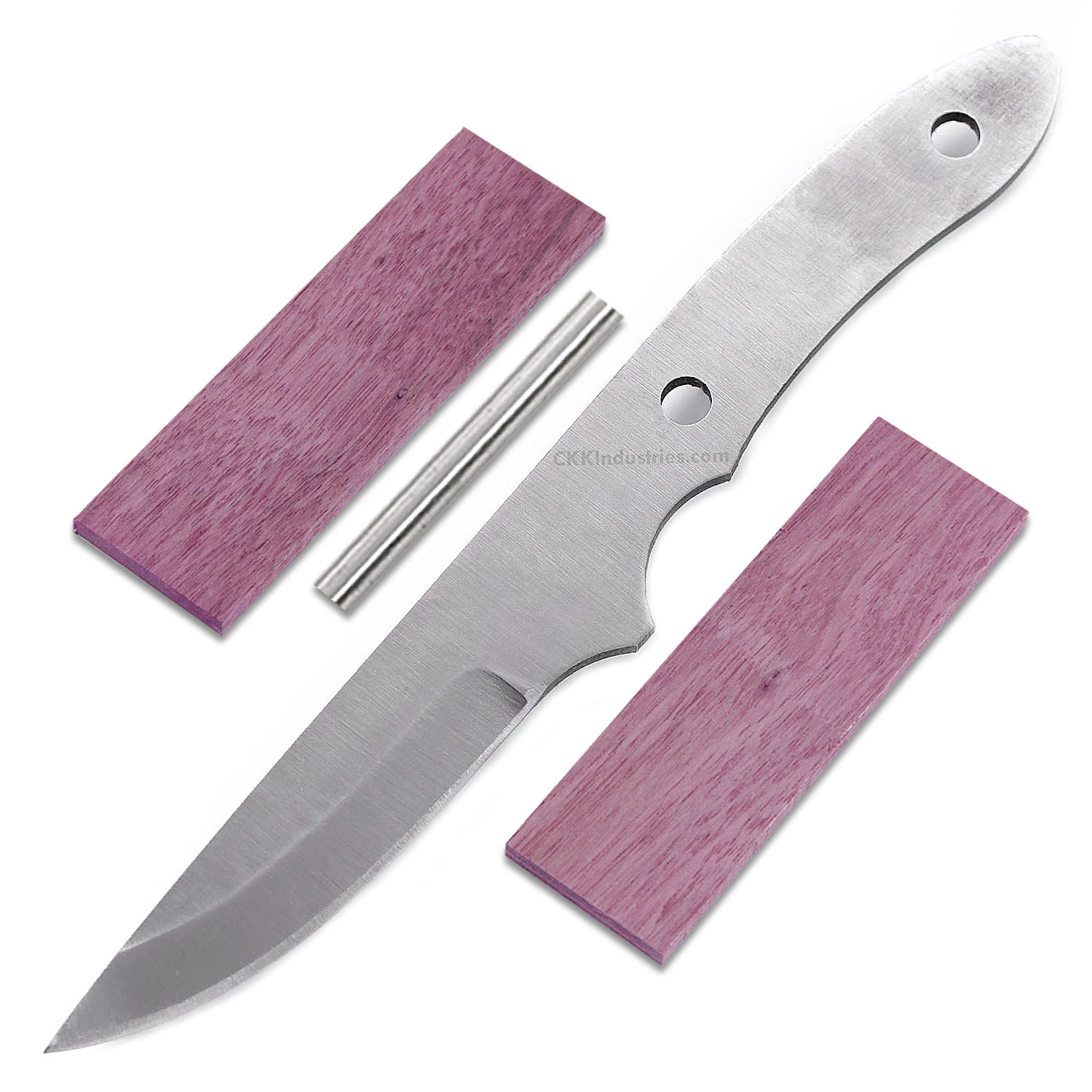 This version of the Little Viper is the combo kit. It comes with the Little Viper blade plus Purpleheart handle scales and stainless steel pinstock to simplify the completion process. This is a great project for a weekend knife making session. Spend some quality workshop time with this knife kit and enjoy the fun of custom knife making and customization.