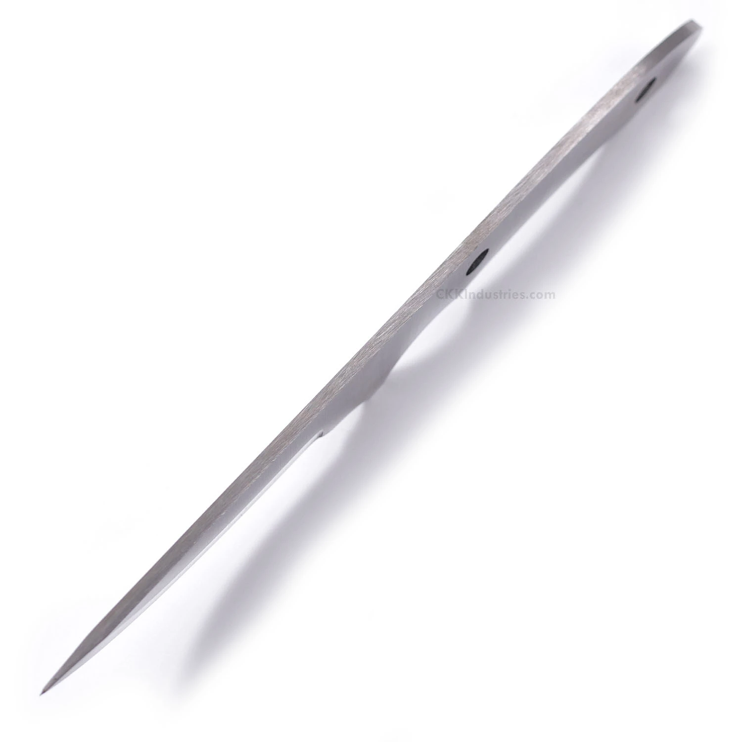 This high carbon fixed blade knife kit design is called the “Little Viper”. It is a USA Made carbon steel high carbon fixed blade knife blank that is hollow-ground and ready to build. This full tang model will make a fantastic personal carry knife. The high carbon fixed blade knife kit is excellent and offers a a great feel in the hand. With a blade length of 3.375 inches and an overall length of 7.56 inches, this design is a perfect concealed-carry size. Ground on both sides, the Little Viper’s blade is 0.8125 inches wide. This blade design features (2) 0.250 inches through-holes for handle construction (stainless steel pinstock included). The tang holes on this model can be modified with ease to work with larger pinstock, or with threaded fasteners.