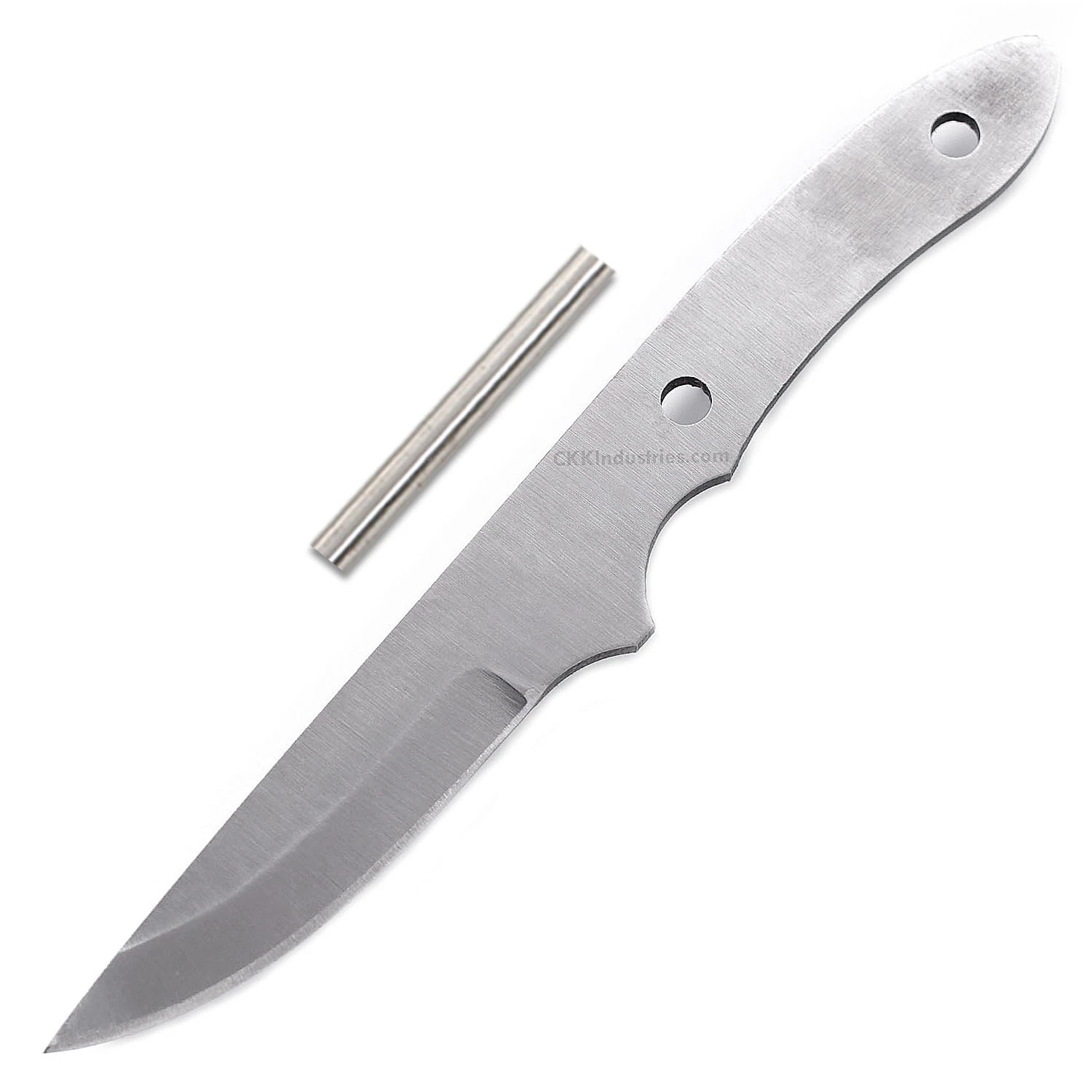 This high carbon fixed blade knife kit design is called the “Little Viper”. It is a USA Made carbon steel high carbon fixed blade knife blank that is hollow-ground and ready to build. This full tang model will make a fantastic personal carry knife. The high carbon fixed blade knife kit is excellent and offers a a great feel in the hand. With a blade length of 3.375 inches and an overall length of 7.56 inches, this design is a perfect concealed-carry size. Ground on both sides, the Little Viper’s blade is 0.8125 inches wide. This blade design features (2) 0.250 inches through-holes for handle construction (stainless steel pinstock included). The tang holes on this model can be modified with ease to work with larger pinstock, or with threaded fasteners.