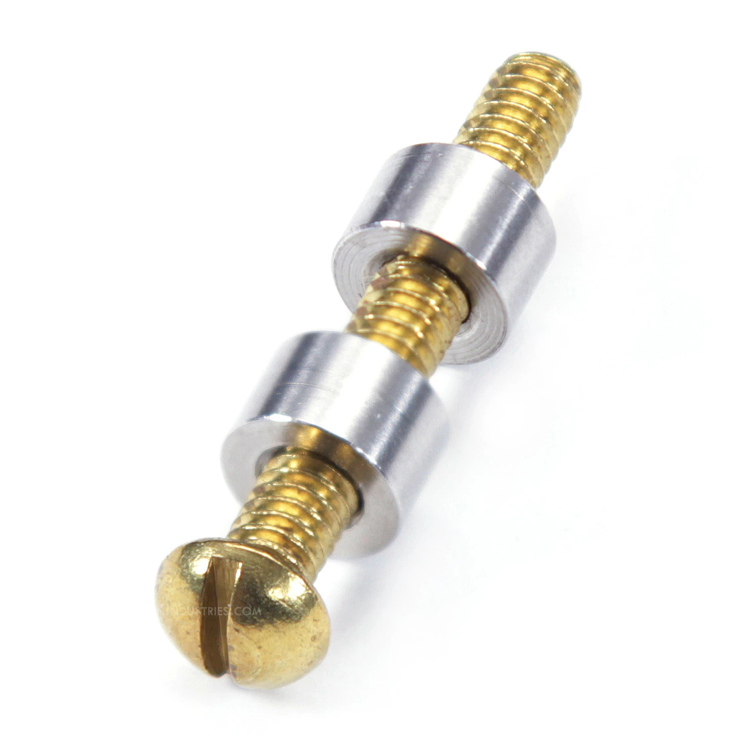 Loveless-Style Fasteners were introduced by knife making legend, Bob Loveless, and are used for affixing knife handles. Loveless-Style Fasteners are a 3-piece design and include (2) threaded heads and (1) threaded screw. With this design, you will create a step hole in each side of your handle material that is slightly larger than the shank of the threaded screw. The three-part assembly allows for you to pass the threaded screw precisely through your knife tang hole and handle material, allowing the larger radius of the Loveless-Style fastener heads to create pinch points on both sides of the handle material, where it can then be tightened down using the screw slot to a secure hold. Once the threaded heads have been tightened, the screw head can be removed and the assembly can be sanded to a flush finish with the handle surface. This will result in a very attractive final surface that resembles a bull’s-eye. Using different materials for both screw and heads will further the contrast of the effect. When used with epoxy and/or thread-locker adhesive, they will create a permanent handle bond.