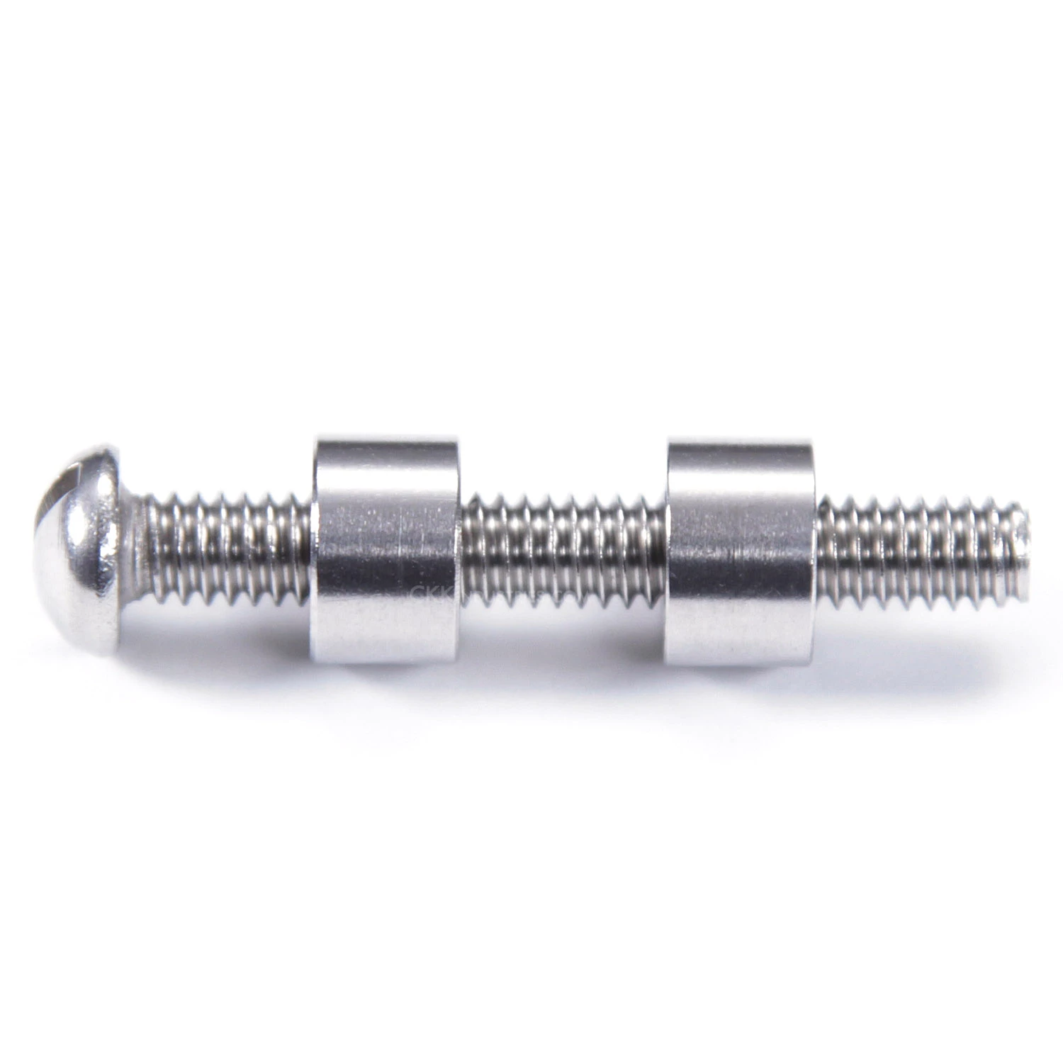 Loveless-Style Fasteners were introduced by knife making legend, Bob Loveless, and are used for affixing knife handles. Loveless-Style Fasteners are a 3-piece design and include (2) threaded heads and (1) threaded screw. With this design, you will create a step hole in each side of your handle material that is slightly larger than the shank of the threaded screw. The three-part assembly allows for you to pass the threaded screw precisely through your knife tang hole and handle material, allowing the larger radius of the Loveless-Style fastener heads to create pinch points on both sides of the handle material, where it can then be tightened down using the screw slot to a secure hold. Once the threaded heads have been tightened, the screw head can be removed and the assembly can be sanded to a flush finish with the handle surface. This will result in a very attractive final surface that resembles a bull’s-eye. Using different materials for both screw and heads will further the contrast of the effect. When used with epoxy and/or thread-locker adhesive, they will create a permanent handle bond.