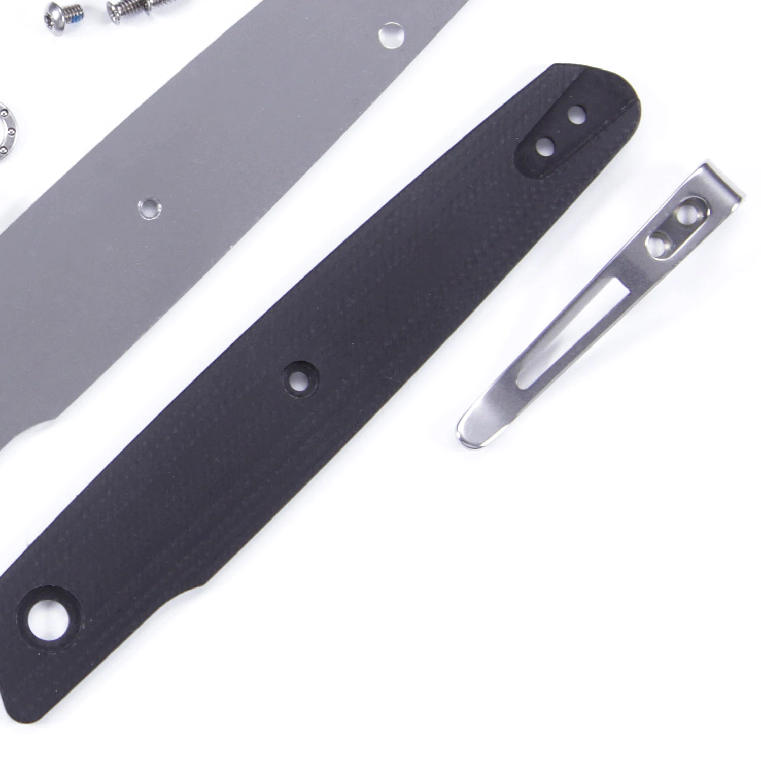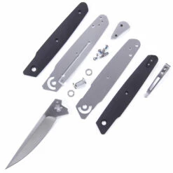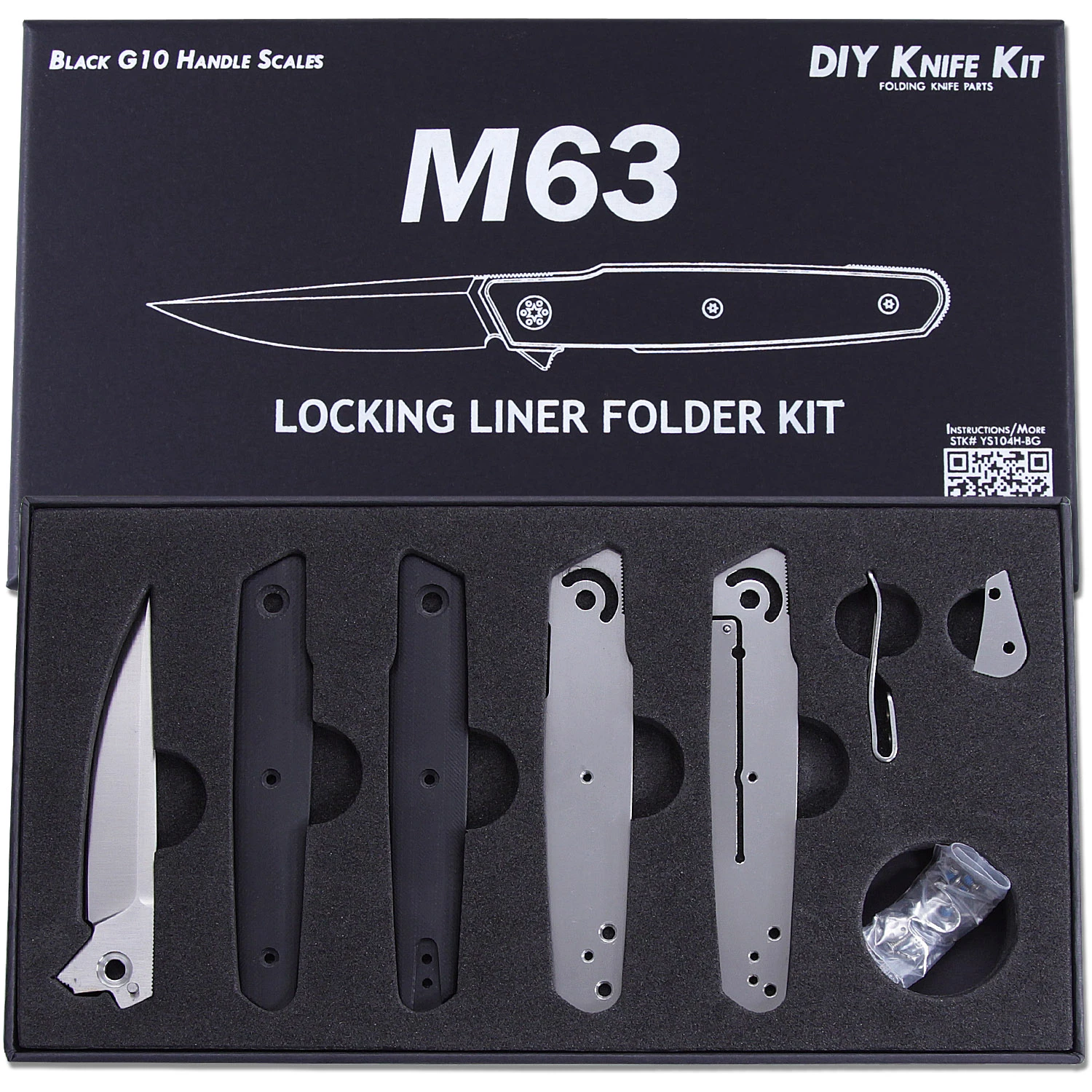 The M63 folding knife kit features all of the parts needed to build this dual bearing flipper design. This version of the M63 comes with fully milled black G10 handle scales. Once built, this model is the perfect size for pocket carry and includes a fold-over pocket clip for secure anchoring. The action on this model is lightening fast and the lockup is safe and reliable. This is an excellent design for those who want to explore the build dynamics of a modern bearing flipper folder. For aspiring knife makers, this build will reveal everything you need to know to adapt this popular mechanism to your own folding knife designs.