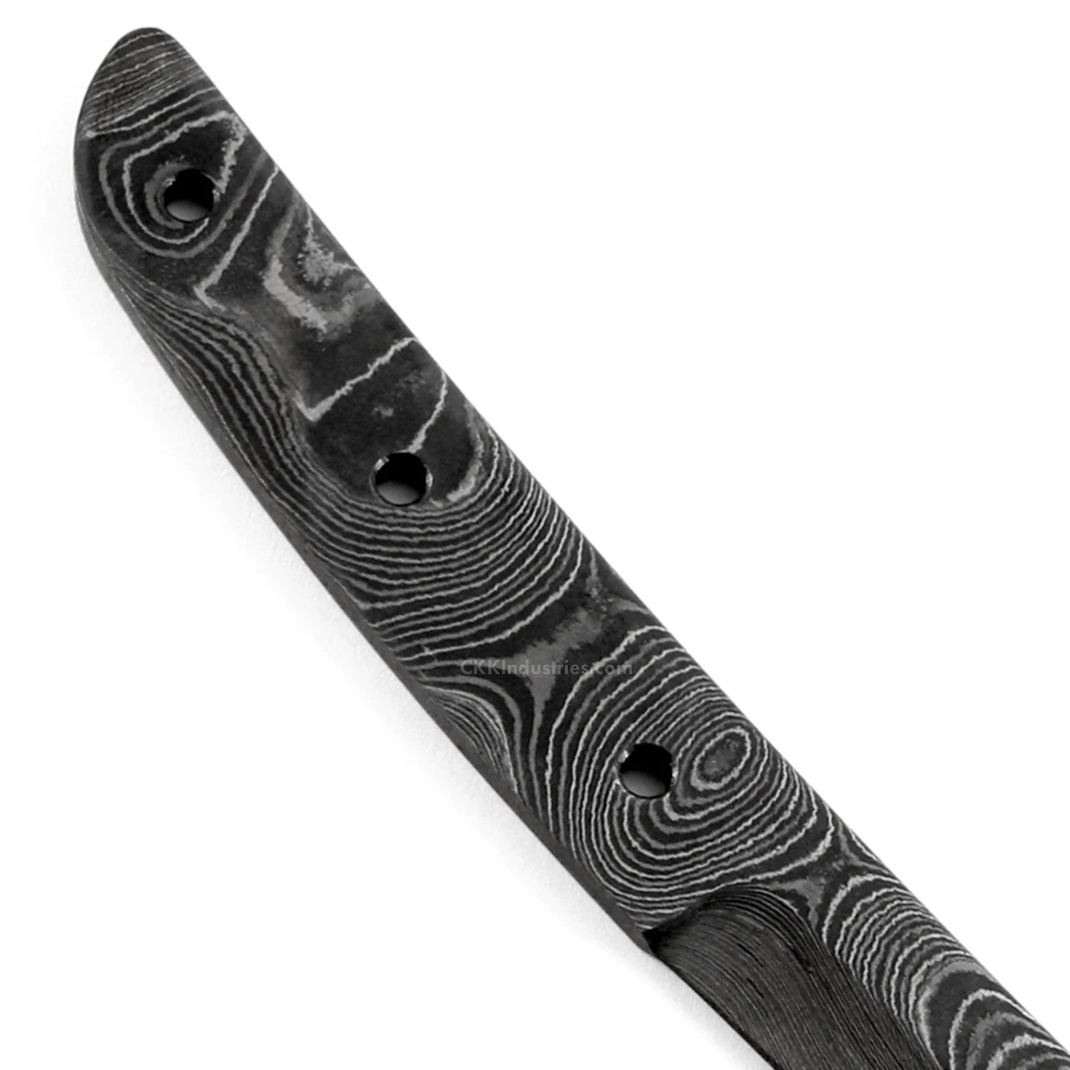 This damascus Japanese tanto knife kit design is called the “Makoto”. It is a USA Made carbon steel damascus fixed blade knife blank that is hollow-ground and ready to build. This design is scaled-down for easy use and carry comfort. The Makoto Japanese tanto knife kit has a blade length of 2.375 inches and an overall length of 6.187 inches. Ground on both sides, the blade is 0.750 inches wide. This tanto blade blank design features (3) .156 inch through-holes for handle construction (stainless steel pinstock included). The tang holes can be modified with ease to work with larger pinstock, or with threaded fasteners. Please see our parts and tools sections for more options. This version of the Makoto is the combo kit. It comes with the Makoto blade plus Walnut handle scales and stainless steel pinstock to simplify the completion process. This is a great project blade for a weekend knife making session. Spend some quality workshop time with this skinning knife kit and enjoy the fun of custom knife making and customization.