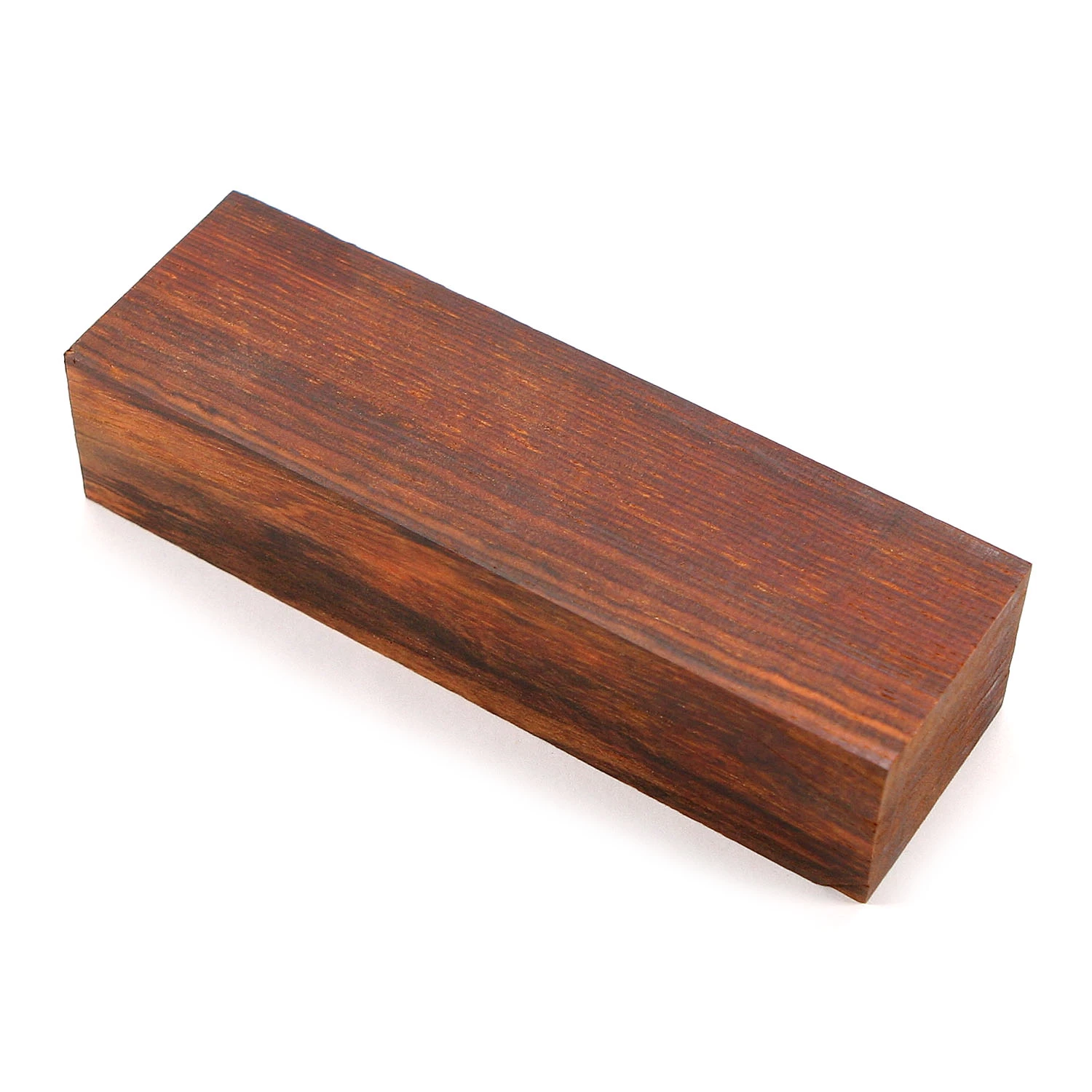 Mexican Cocobolo is a true rosewood and one of the world’s most attractive exotic woods. Its incredible hardness and density, combined with its deeper color tones, including shades of dark orange, deep yellow, burnt red, and rich brown tones, make it a favorite among knife makers around the world. Mexican Cocobolo wood stands up extremely well to repeated handling and exposure to moisture. These traits, plus its natural hardness, make it an excellent choice for use in gun grips and knife handles. Mexican Cocobolo wood knife handle blocks machine very well and can be polished to a lustrous, glass-like finish. The block format allows you to maximize the use, and value of the material, as it can be used as a full piece (for hidden tang designs) and will produce multiple book matched handle scale sets.
