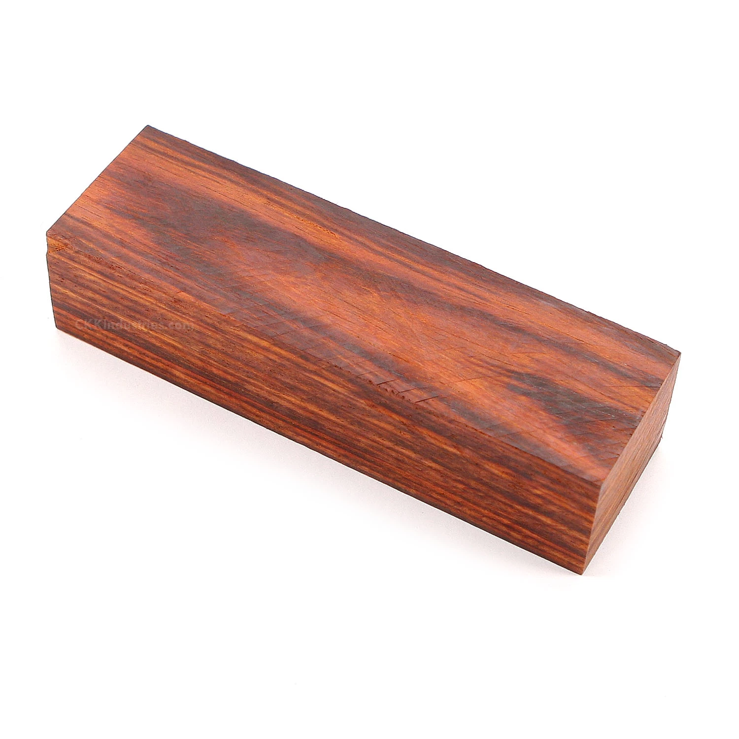 Mexican Cocobolo is a true rosewood and one of the world’s most attractive exotic woods. Its incredible hardness and density, combined with its deeper color tones, including shades of dark orange, deep yellow, burnt red, and rich brown tones, make it a favorite among knife makers around the world. Mexican Cocobolo wood stands up extremely well to repeated handling and exposure to moisture. These traits, plus its natural hardness, make it an excellent choice for use in gun grips and knife handles. Mexican Cocobolo wood knife handle blocks machine very well and can be polished to a lustrous, glass-like finish. The block format allows you to maximize the use, and value of the material, as it can be used as a full piece (for hidden tang designs) and will produce multiple book matched handle scale sets.