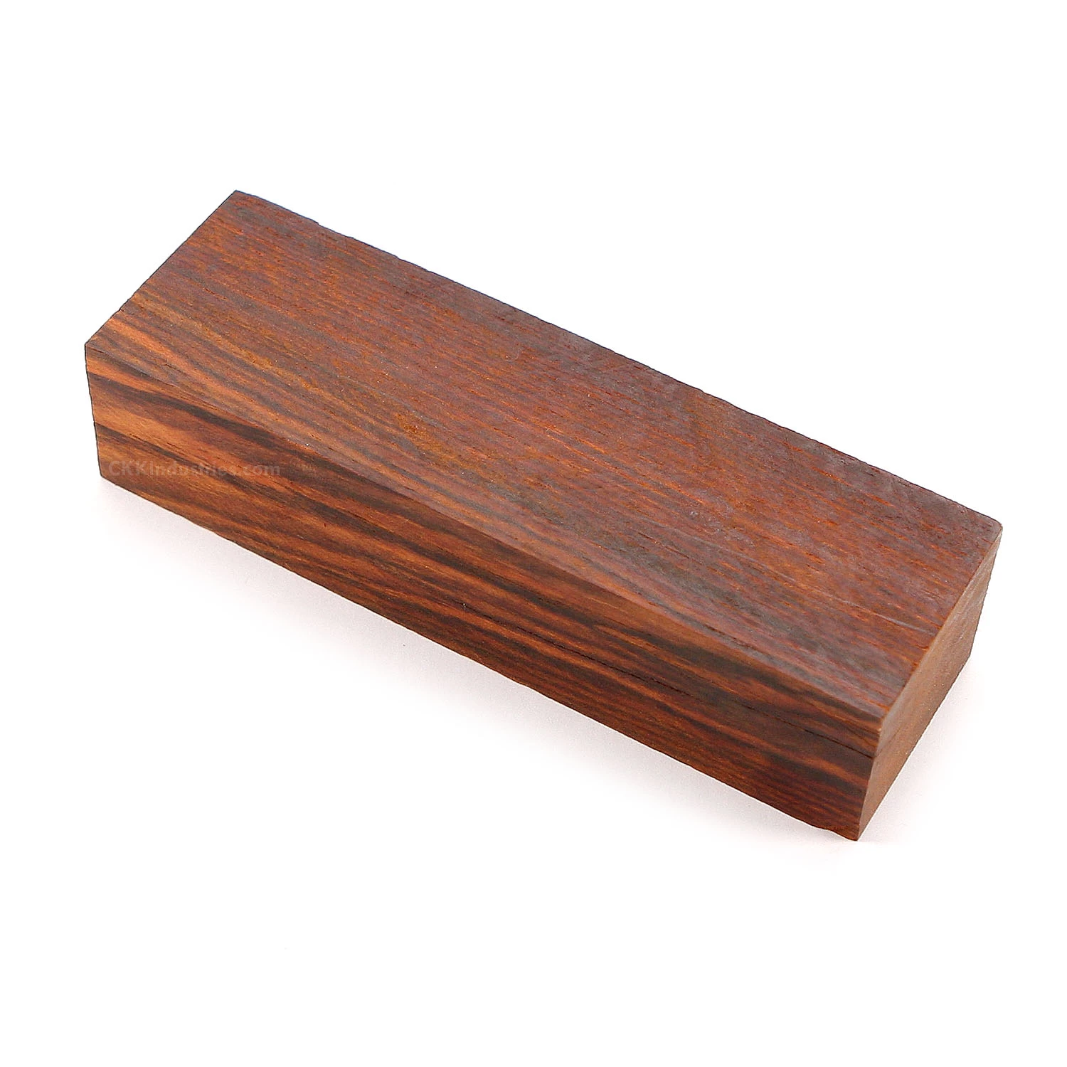 Mexican Cocobolo is a true rosewood and one of the world’s most attractive exotic woods. Its incredible hardness and density, combined with its deeper color tones, including shades of dark orange, deep yellow, burnt red, and rich brown tones, make it a favorite among knife makers around the world. Mexican Cocobolo wood stands up extremely well to repeated handling and exposure to moisture. These traits, plus its natural hardness, make it an excellent choice for use in gun grips and knife handles. Mexican Cocobolo wood knife handle blocks machine very well and can be polished to a lustrous, glass-like finish. The block format allows you to maximize the use, and value of the material, as it can be used as a full piece (for hidden tang designs) and will produce multiple book matched handle scale sets.