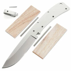 This version of the Midwest Hunter is the combo kit. It comes with the Midwest Hunter blade, guard, Canarywood handle scales, plus stainless steel pinstock to simplify the completion process. This is a great project for a weekend knife making session. Spend some quality workshop time with this knife kit and enjoy the fun of custom knife making and customization.